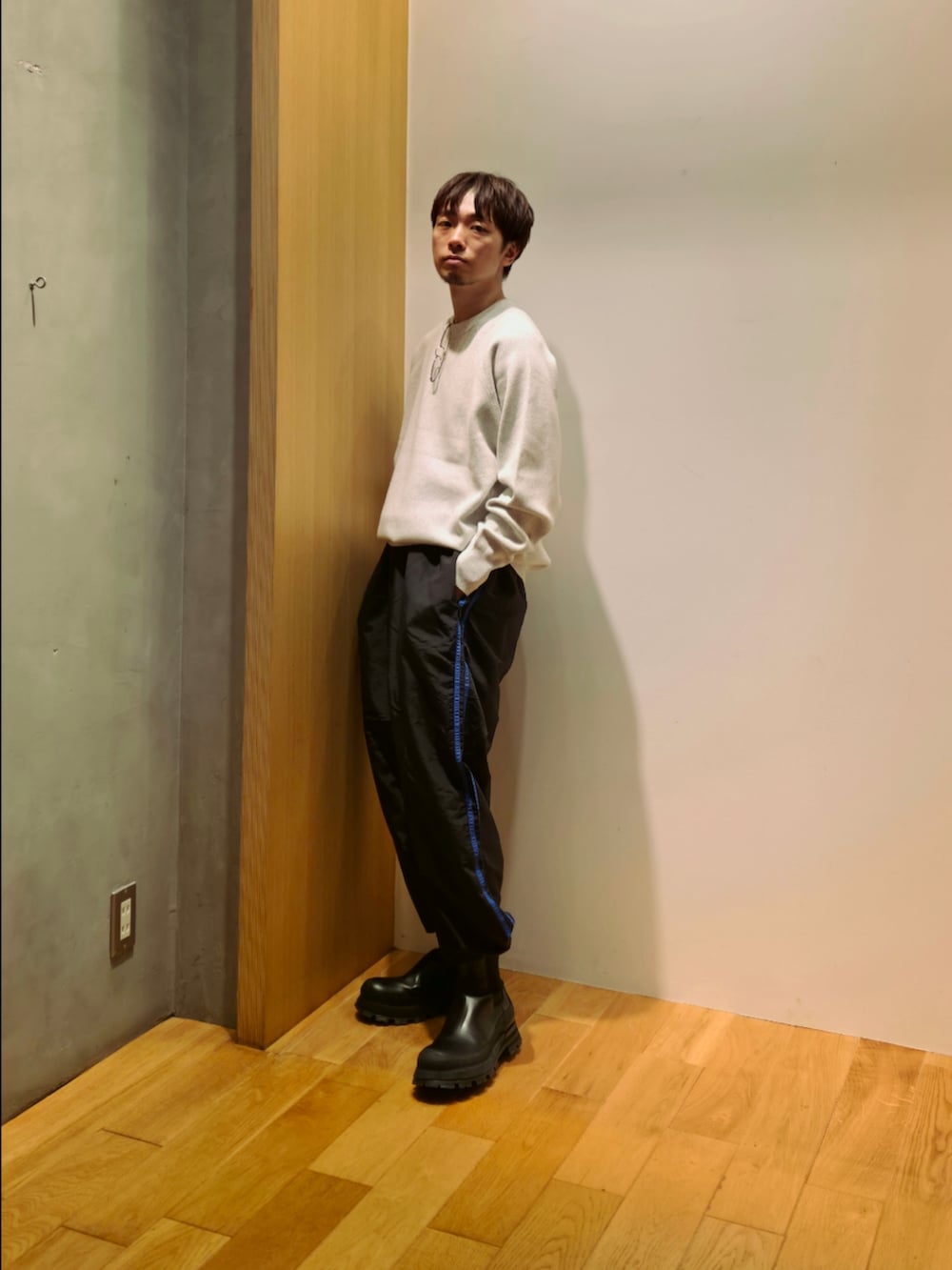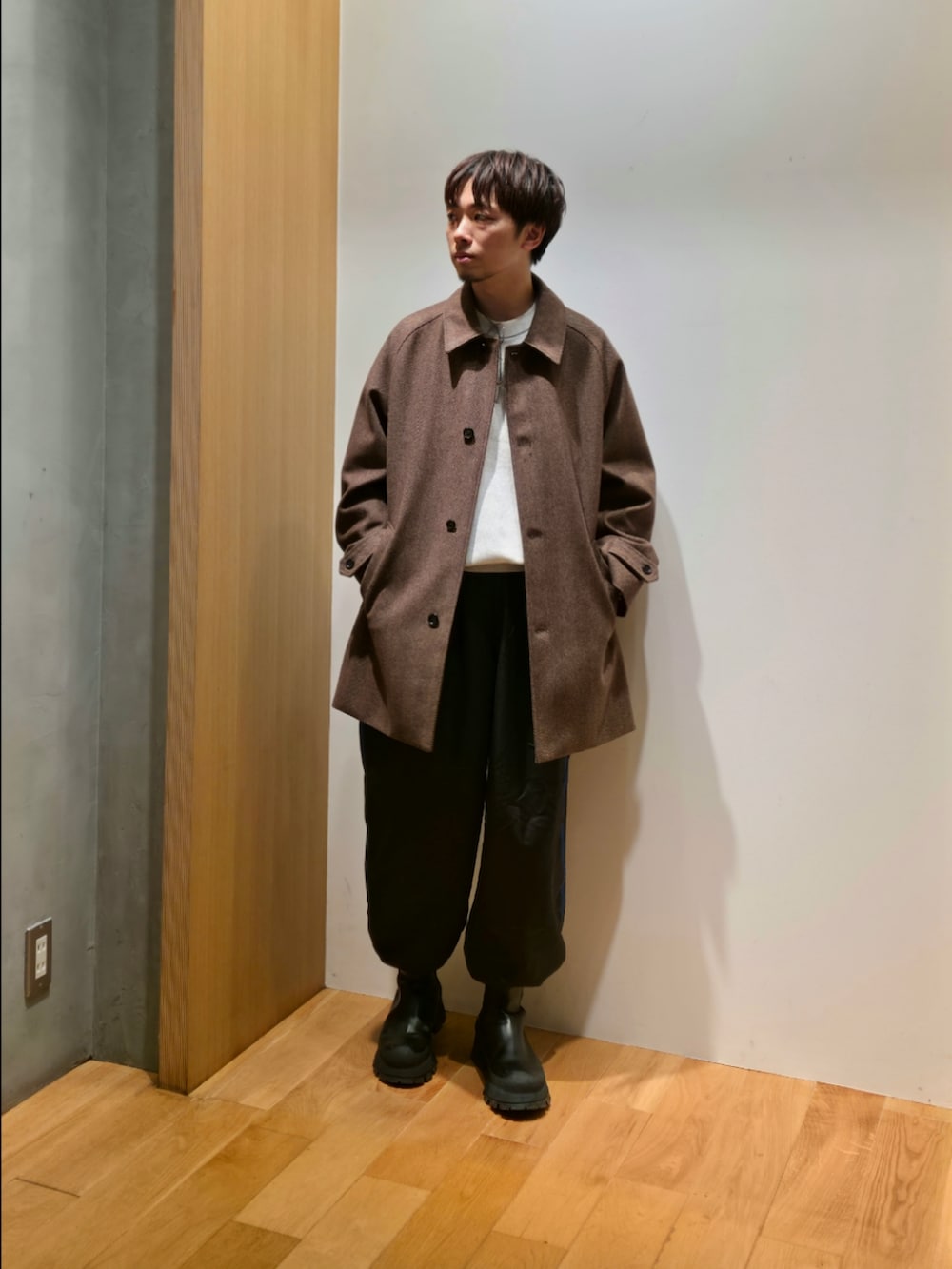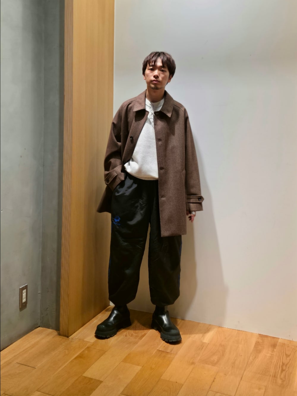 コート×ニットにナイロンパンツを合わせた変化球コーデ✨️