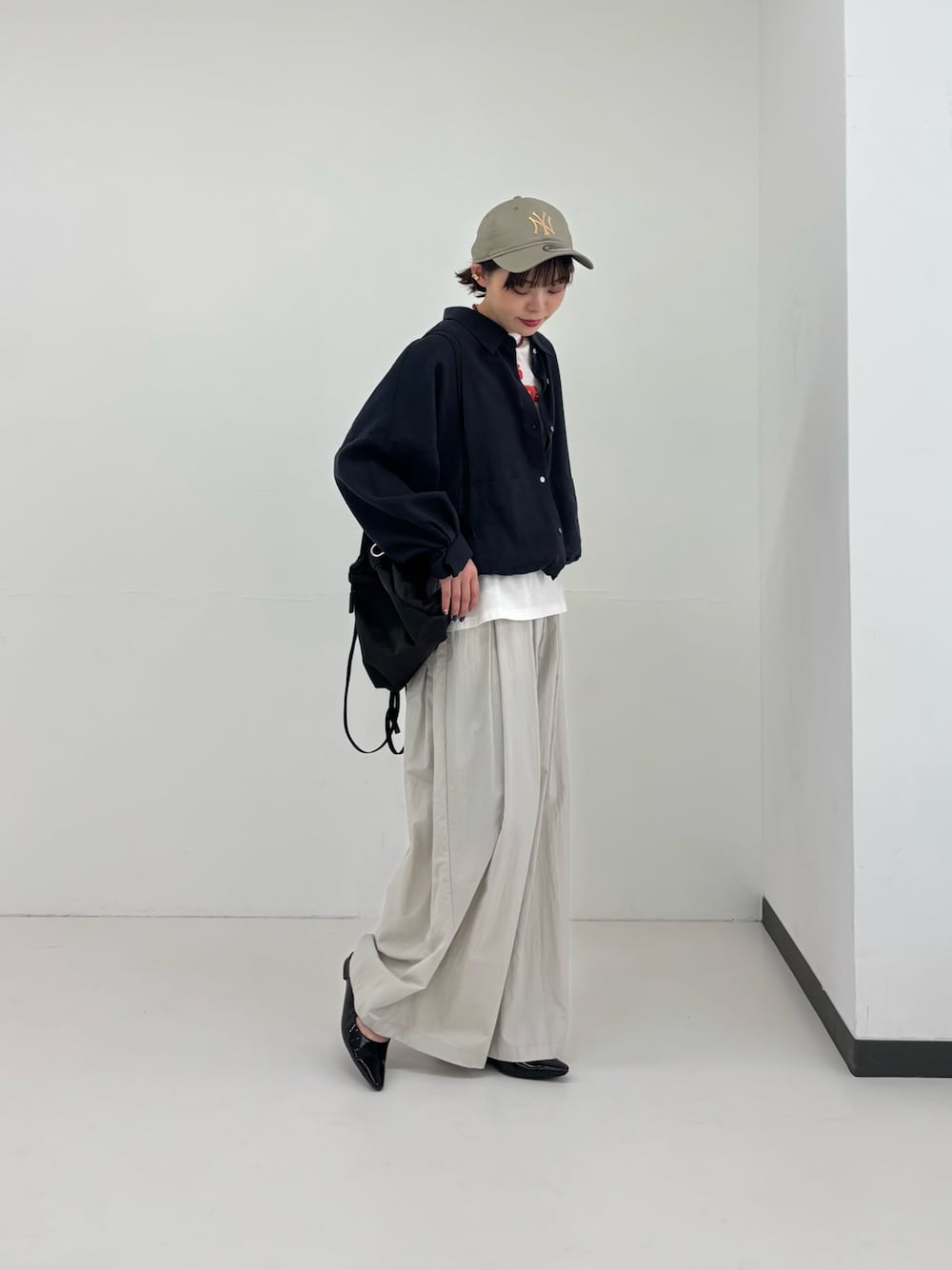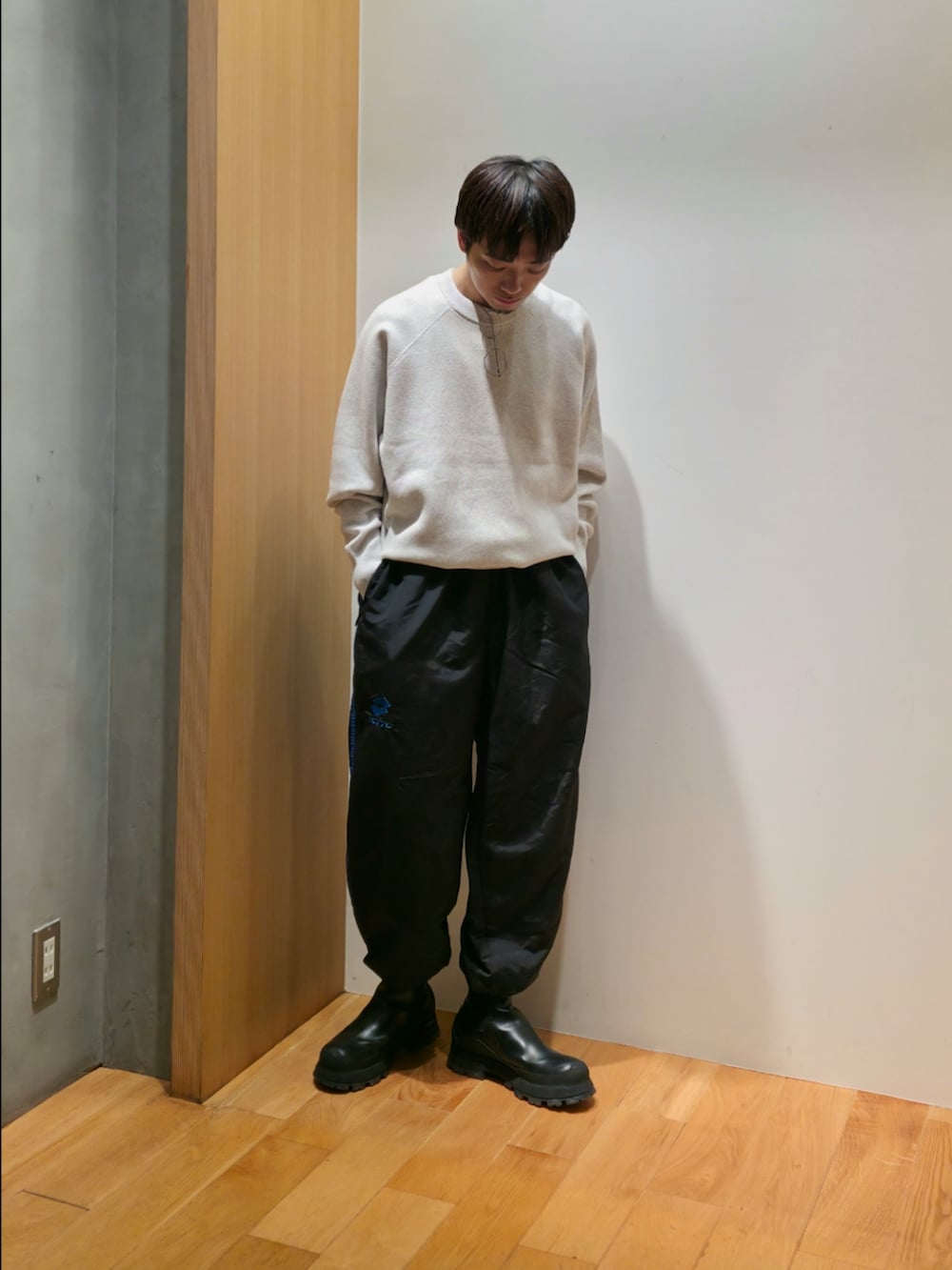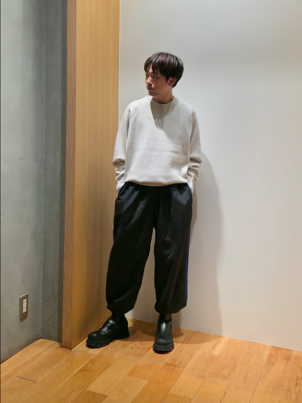 コート×ニットにナイロンパンツを合わせた変化球コーデ✨️