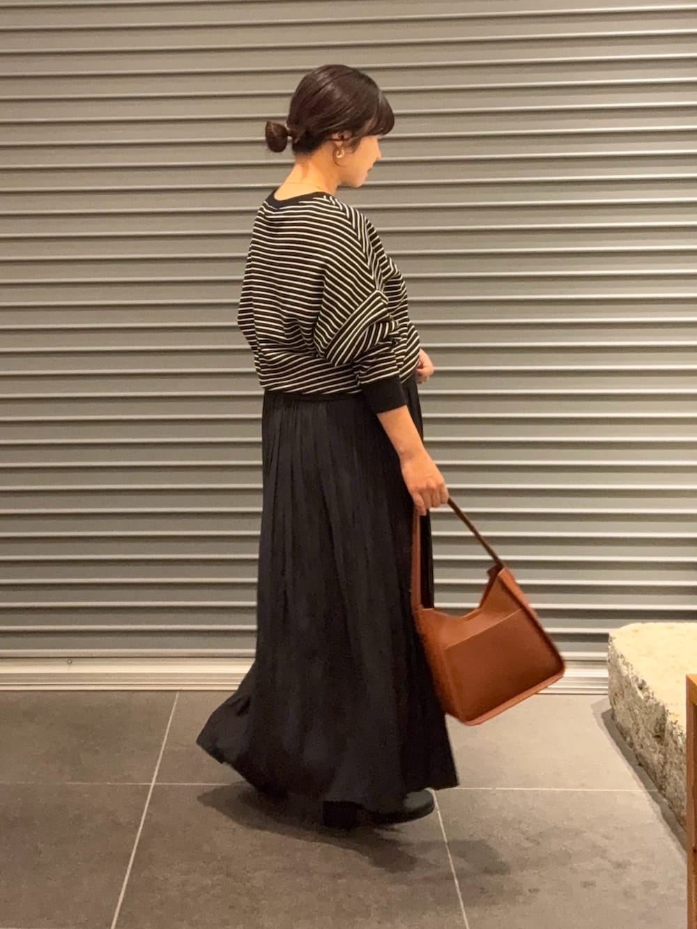 柔らかい素材感でゆるっとシルエットなので、とても着心地が良いです。ボーダーはキレイめな印象にも着れるのでお仕事着にも。