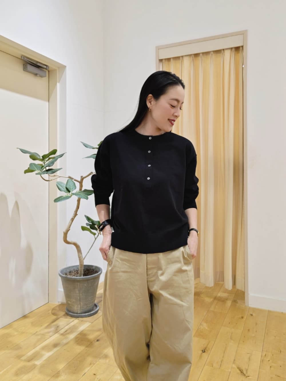 厚みがあるニット生地なので、ちょっとしたアウター感覚でも使えると思います^_^