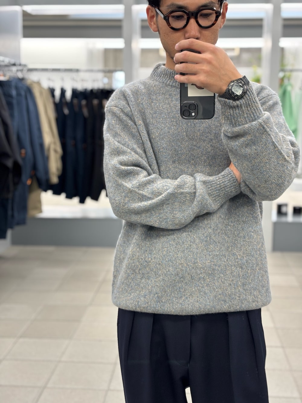 ムリネを3つ杢にすることで、独特の配色に仕上がっており、着心地もデザインも素敵なニットに仕上がっております!