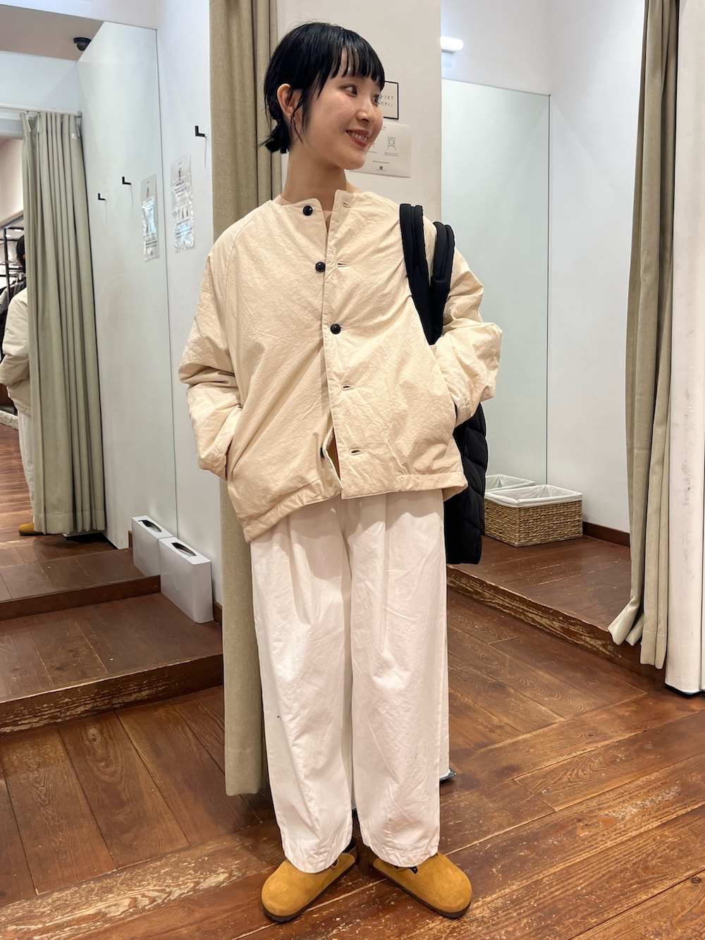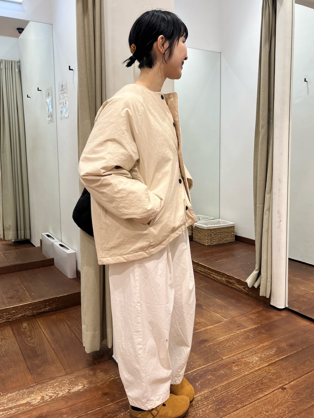 ゆったりした幅感と、ノーカラーのすっきり感を兼ね揃えたな最強アウター。