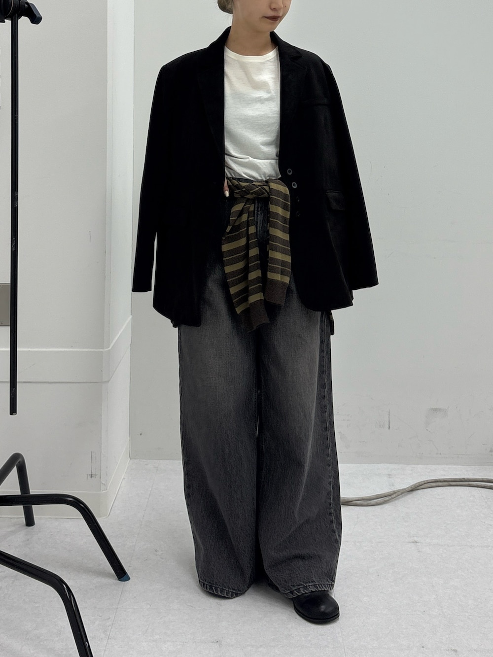 インナーはシンプルなカットソーに、ニットは腰巻きで合わせると今年っぽさのあるスタイリングなります🙂↕️