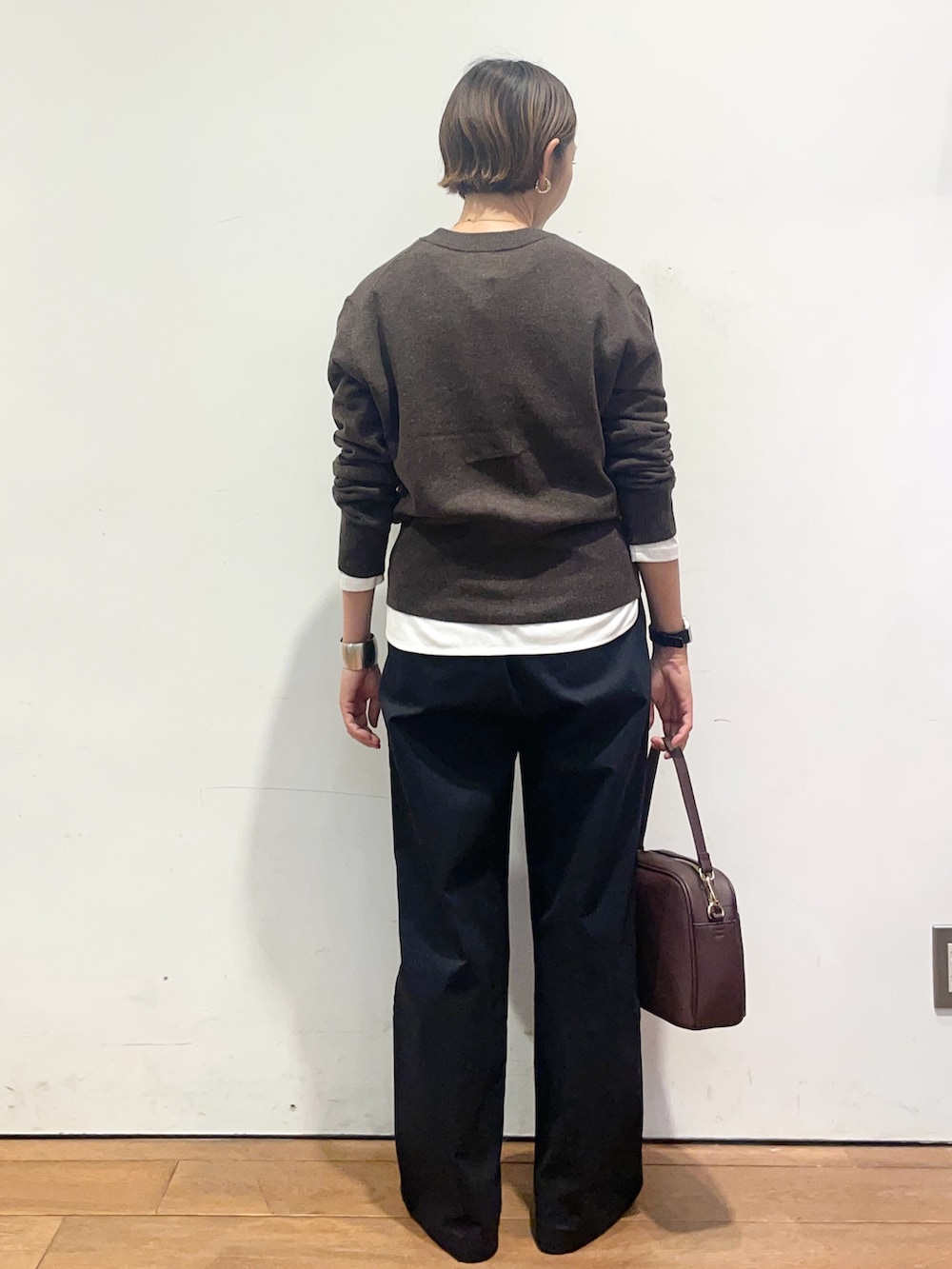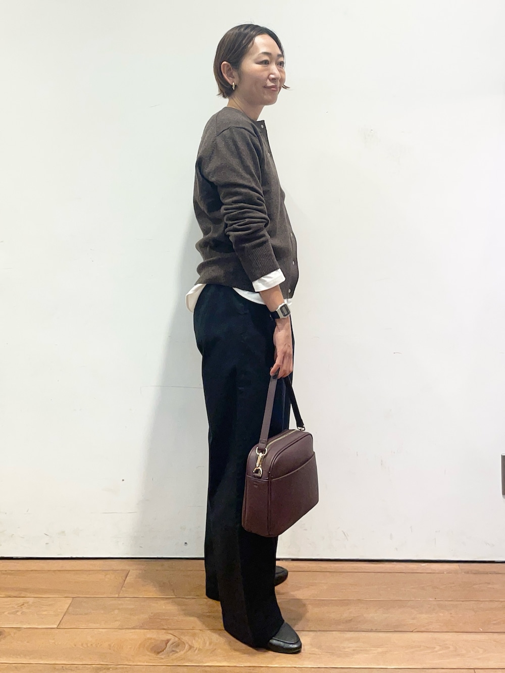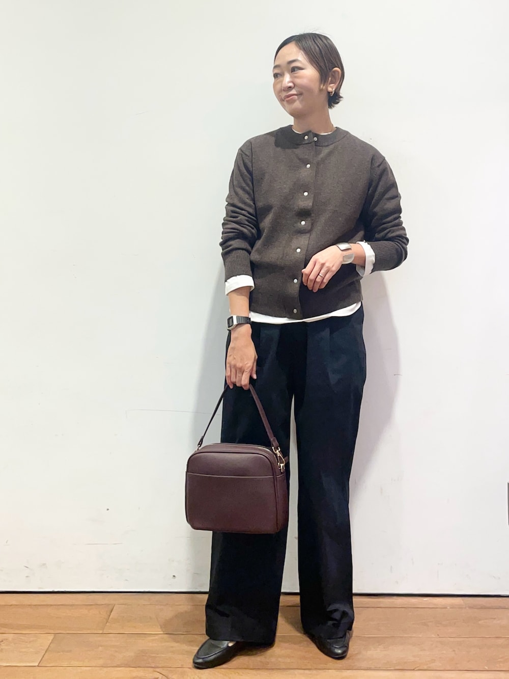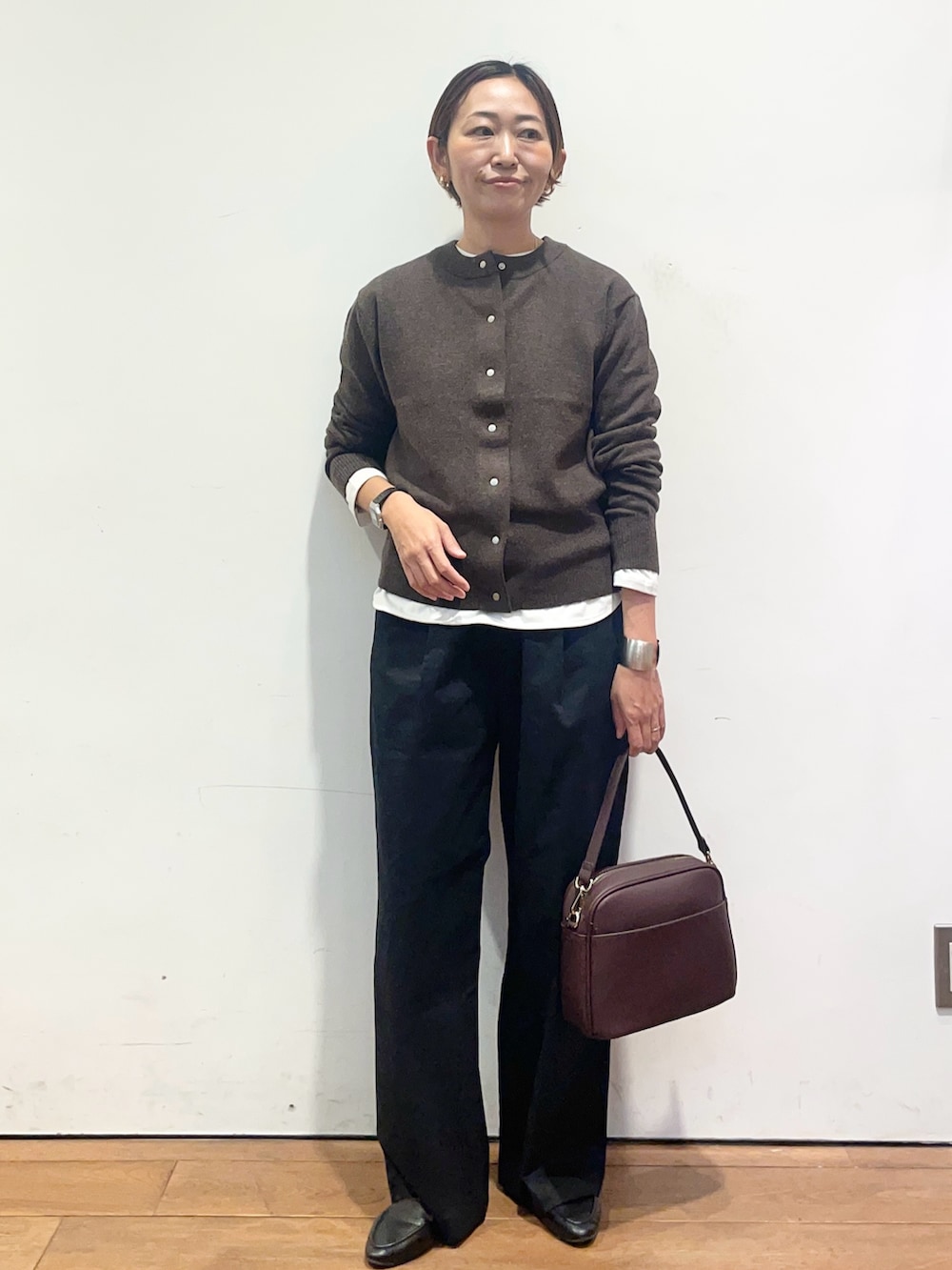 カーディガンはスッキリとしたサイズ感で、着回しがききます。