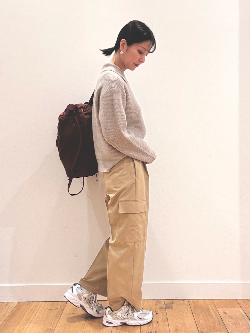 合わせたカーゴパンツもセンタープレスが入るとちょっと綺麗めな印象に◎