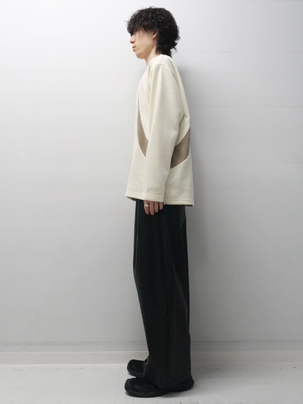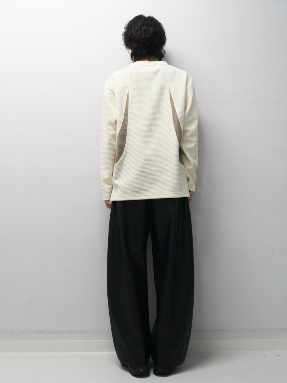 トップスはワッフルのような生地感で1枚でもデザイン性があり着やすくなっています。