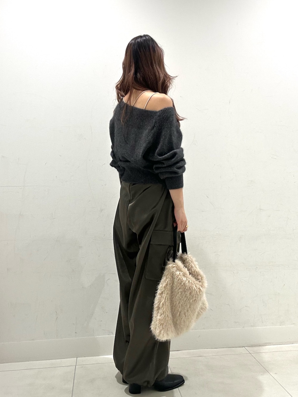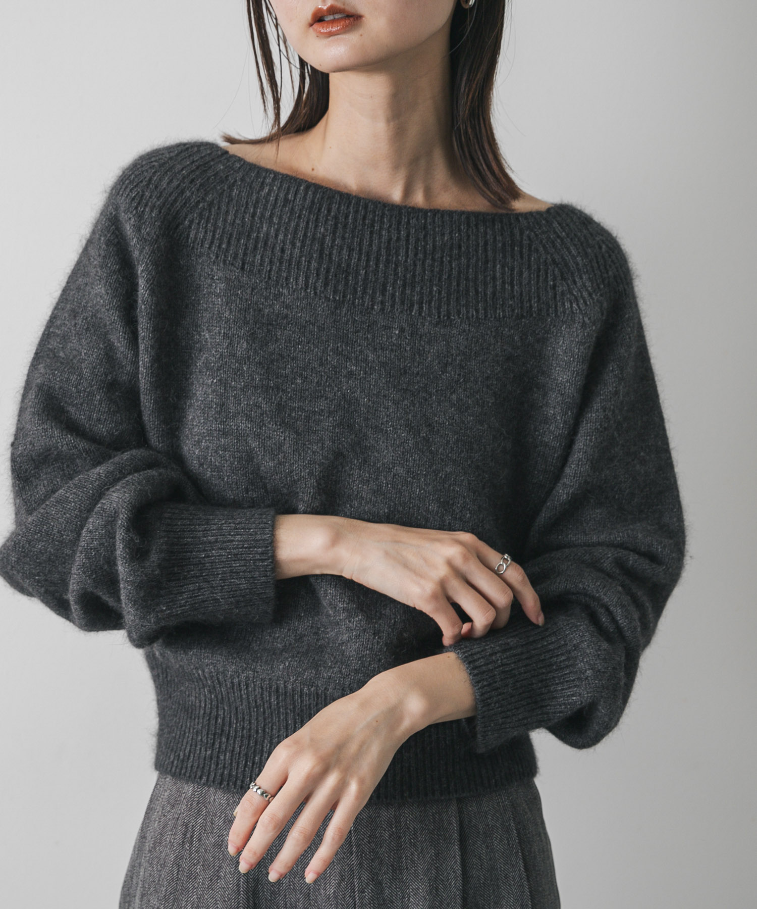 オフショルにもできるニットはさりげないモヘア感が秋冬にとてもおすすめです。