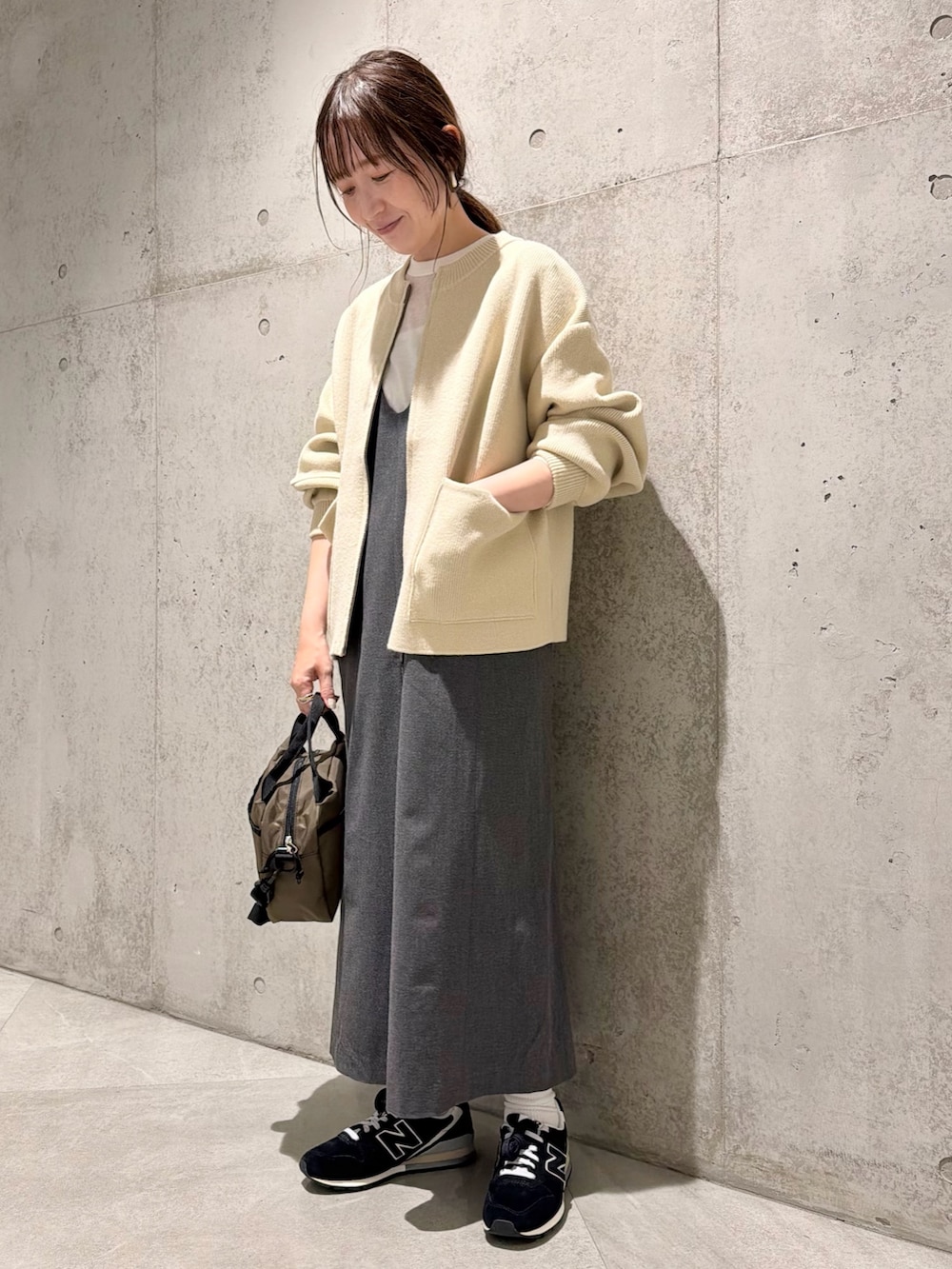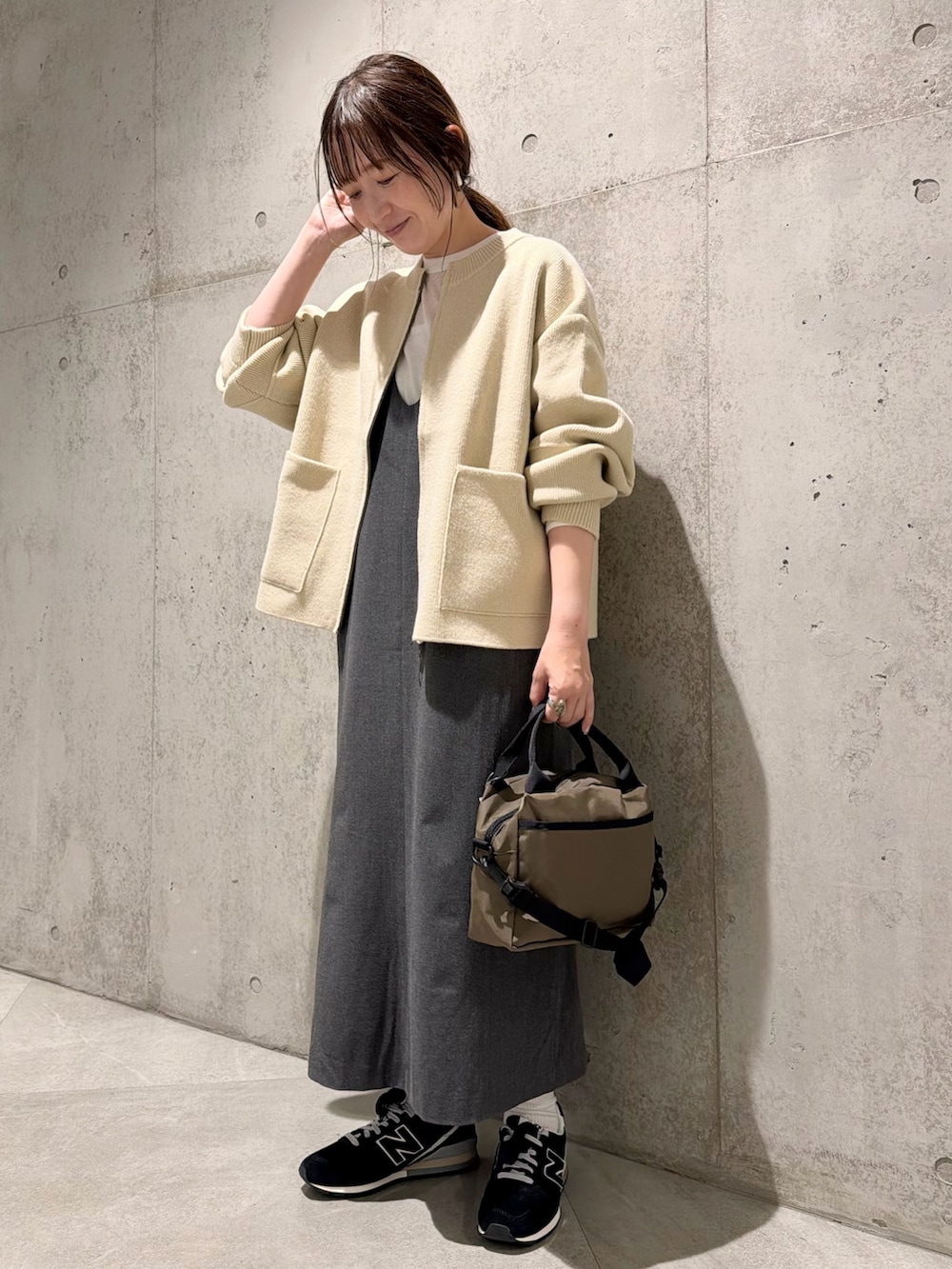 今回は、ジャンパースカートと合わせた、ナチュラル感のあるカジュアルコーディネート。