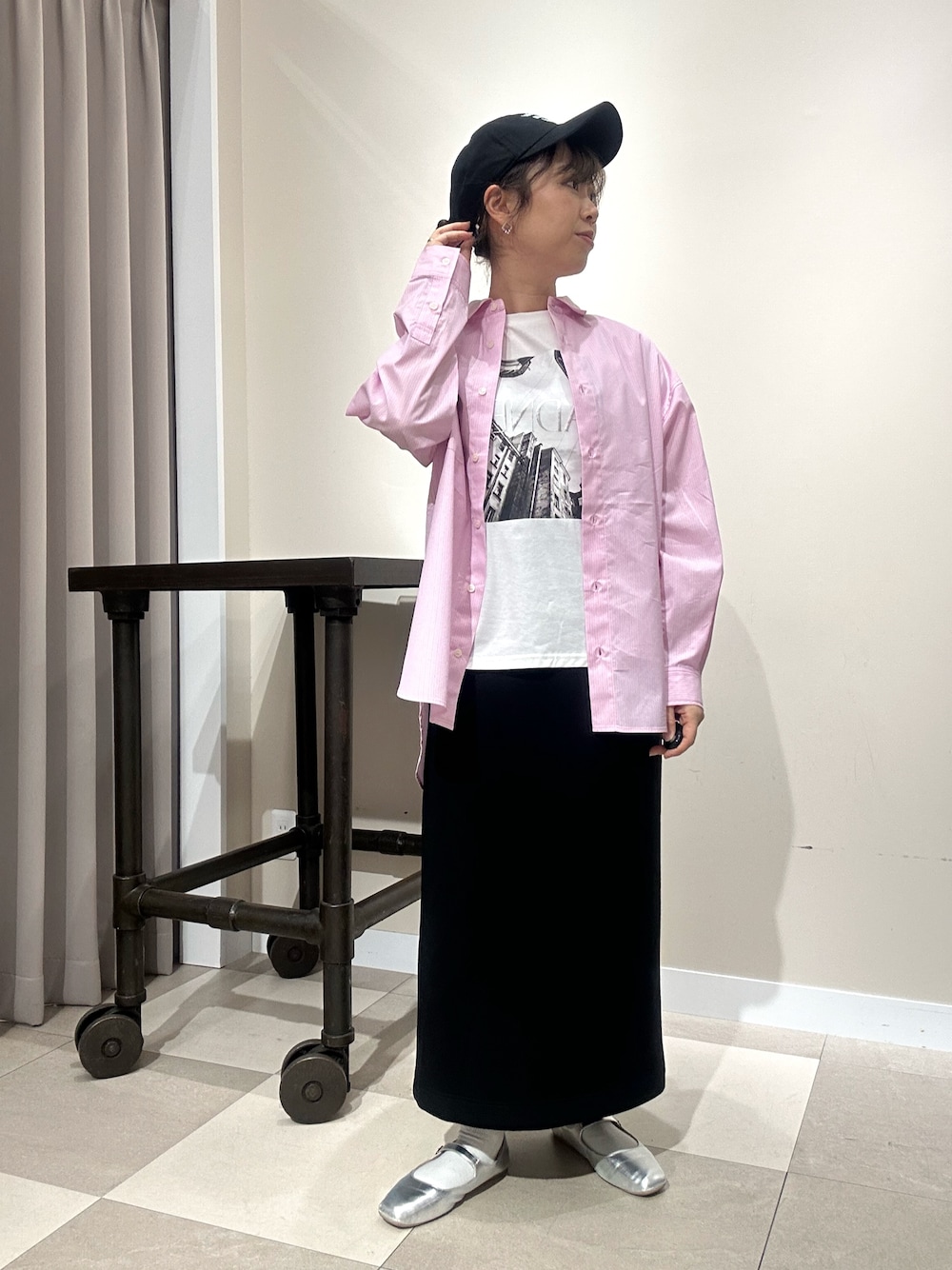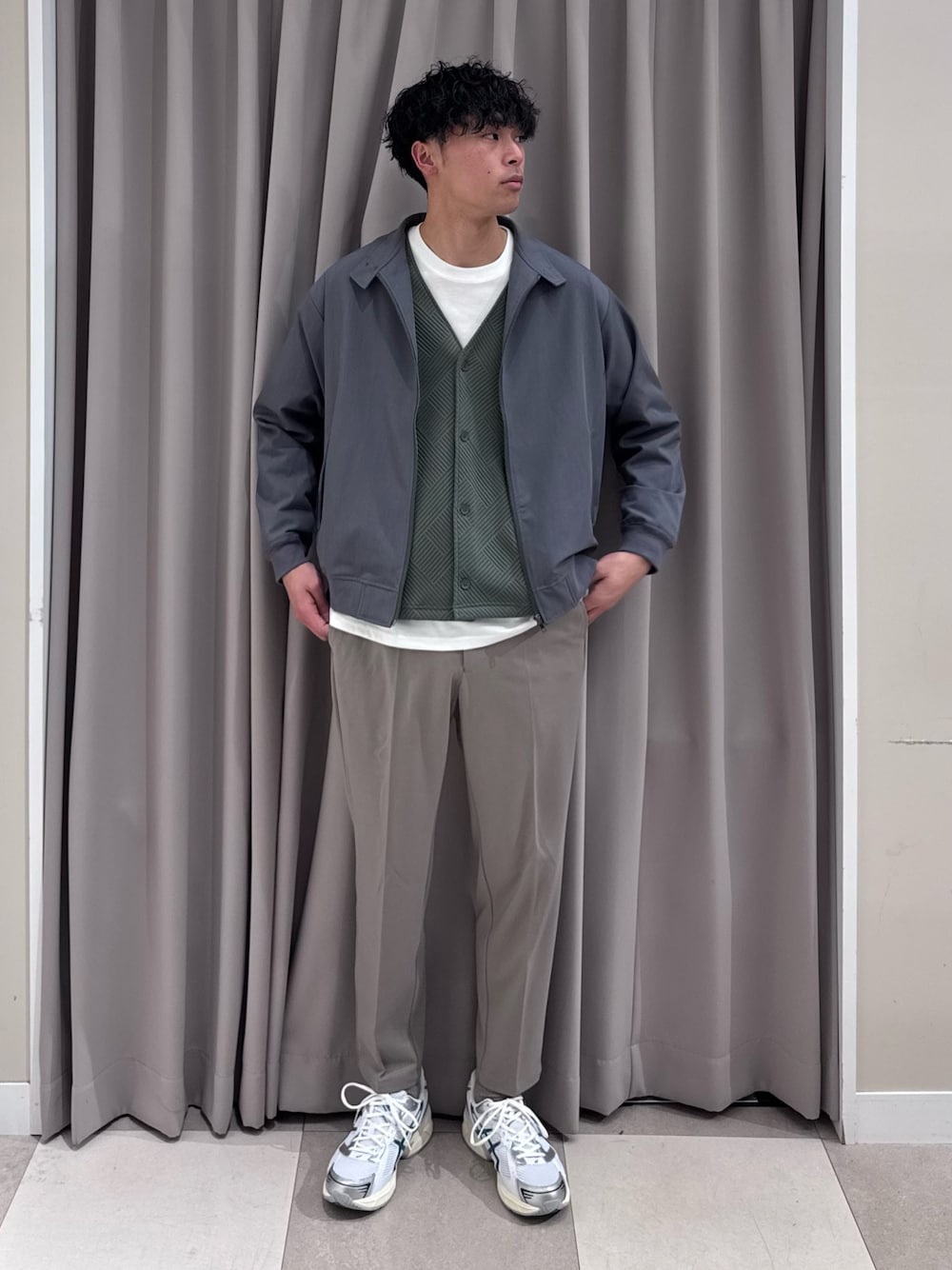 オックスのシャツで締めながらもルーズシルエットのカーディガンとデニムでラフさを。