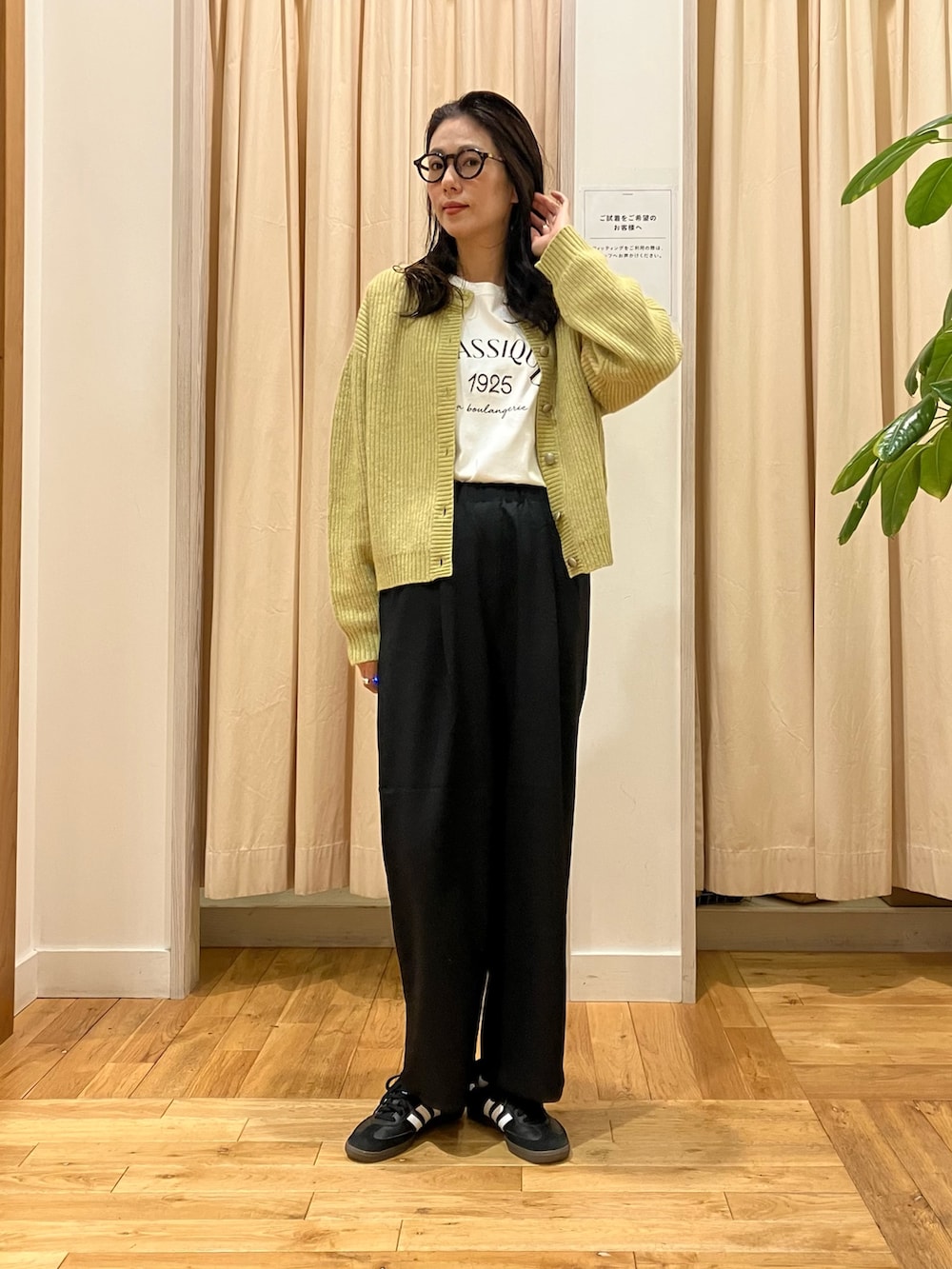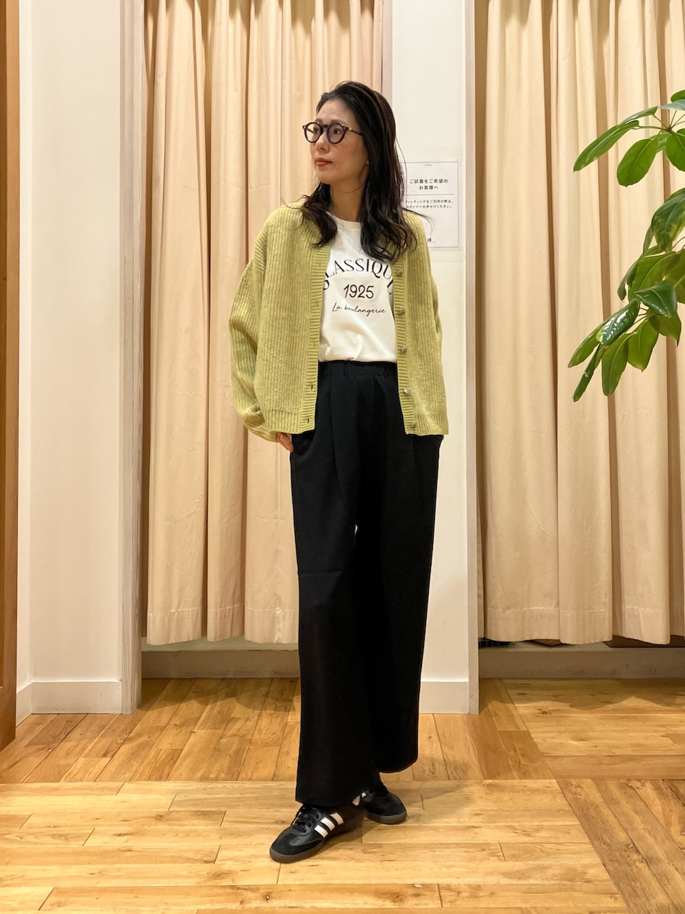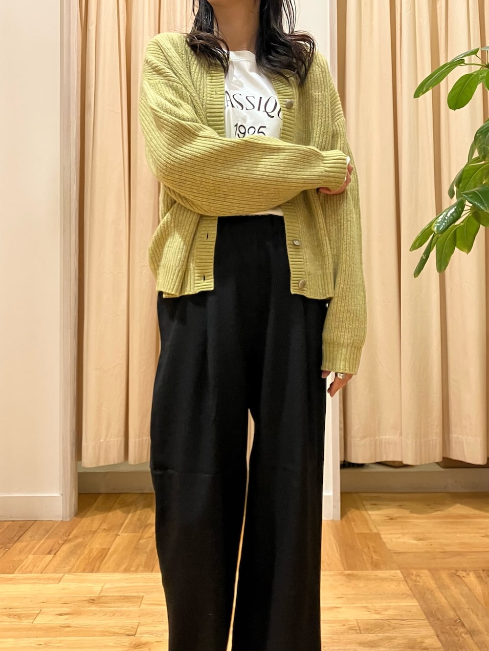 ボタンがかわいいカーディガンがピスタチオのカラーが華やかな印象になりオススメです◎