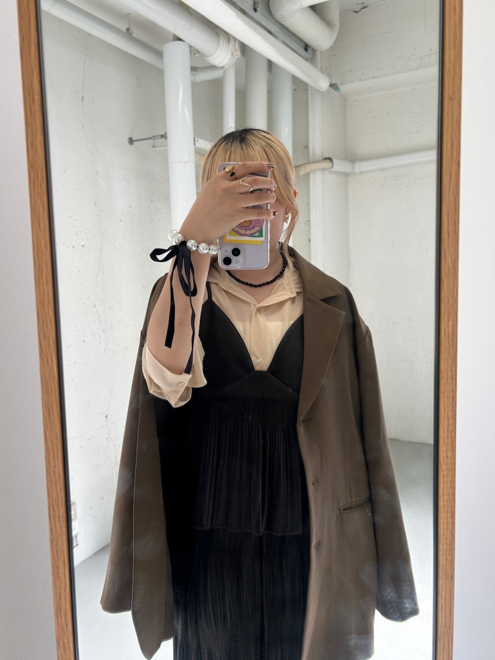 ブラウンのジャケットと合わせてワントーンコーデにしてみました!