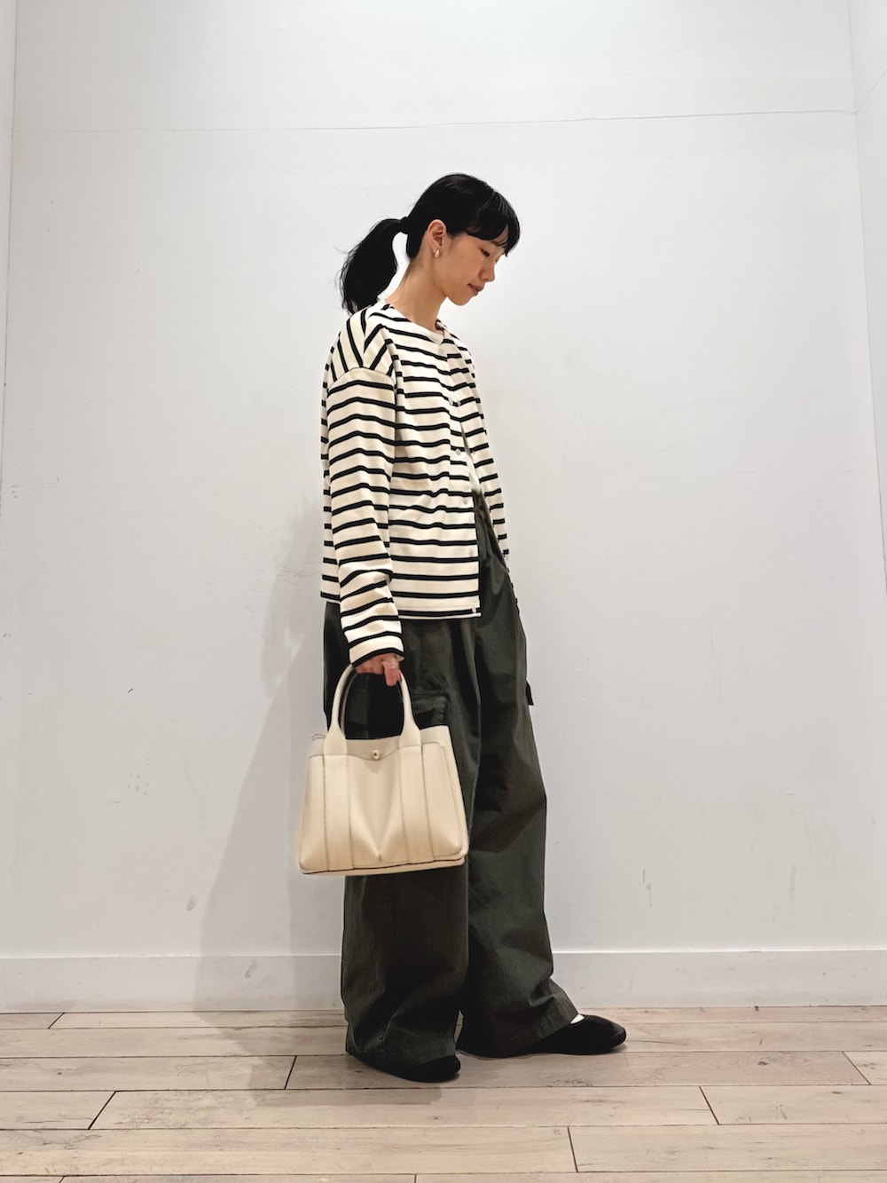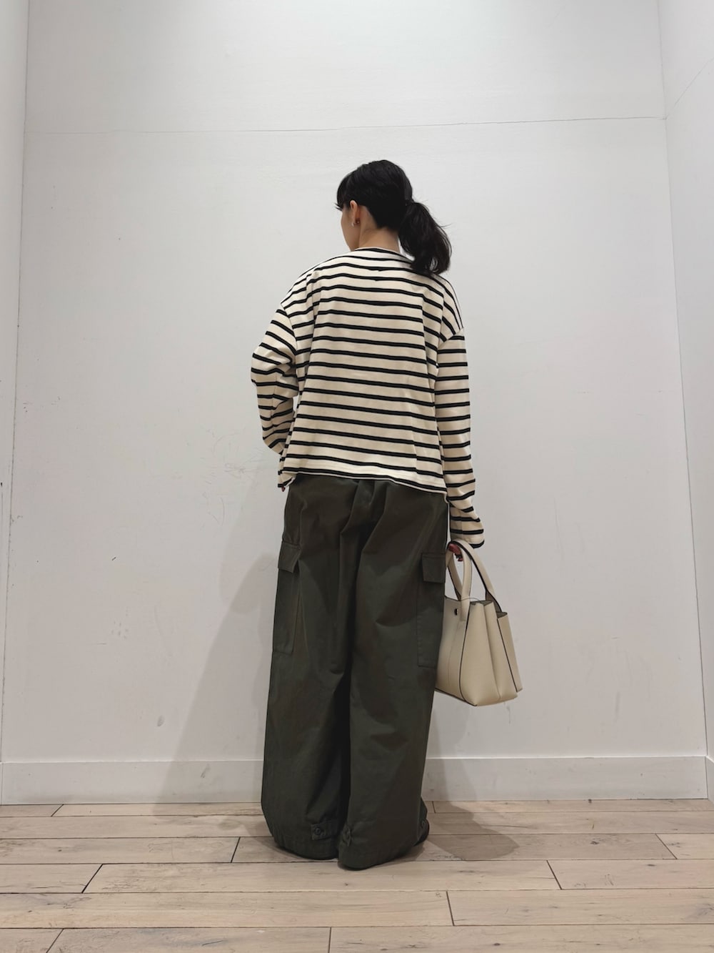 パンツはウエストゴムで楽ちんです!更に裾にボタンがついていてテーパードシルエットに変えられます◎