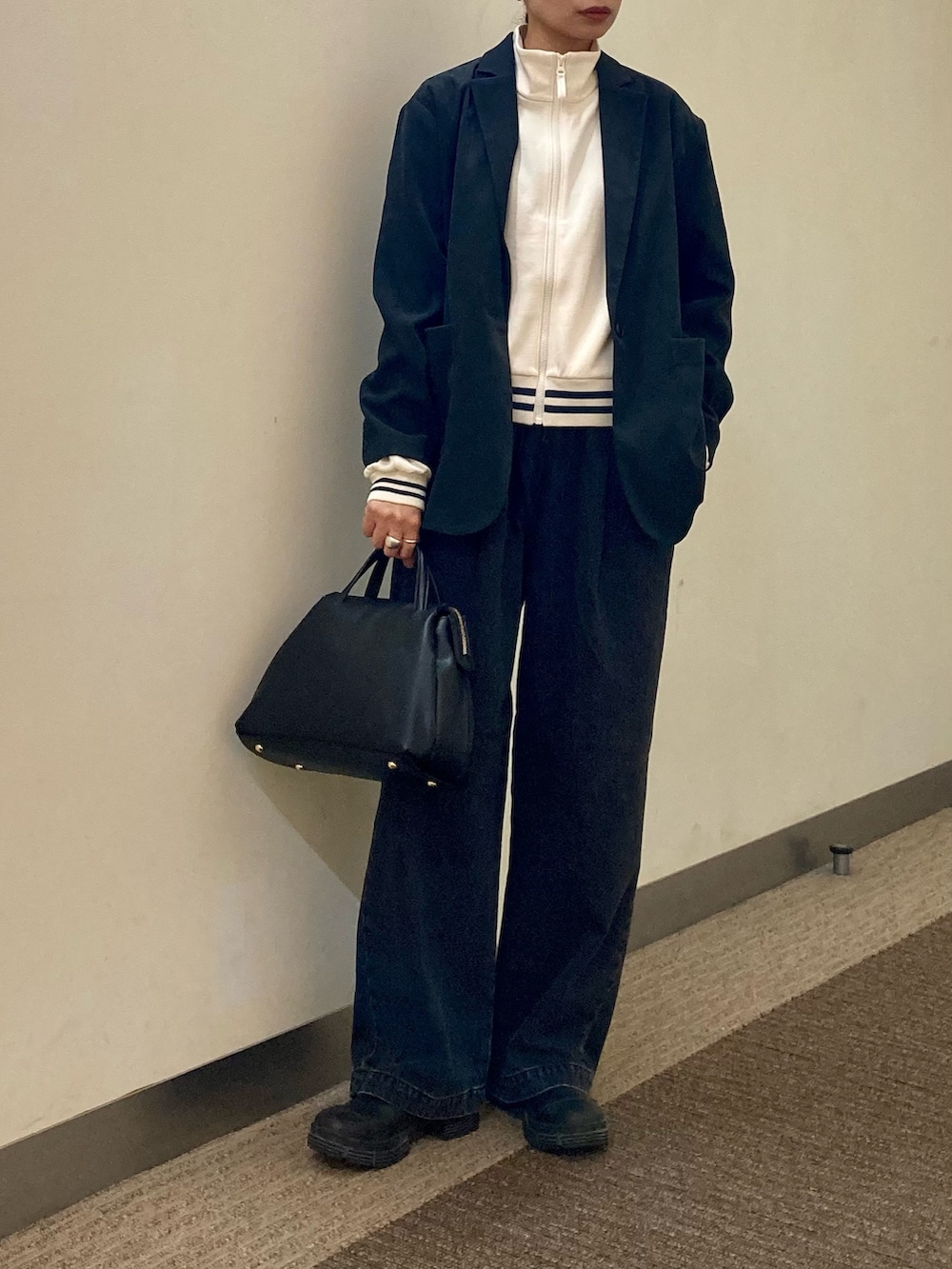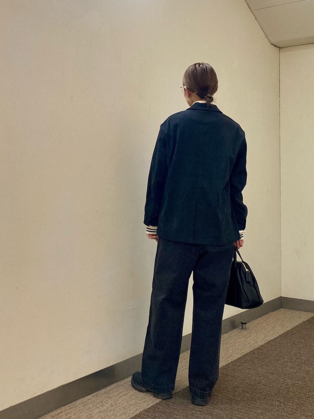 そのままで着るとちょっとカジュアルすぎるって時はジャケットを合わせると◎