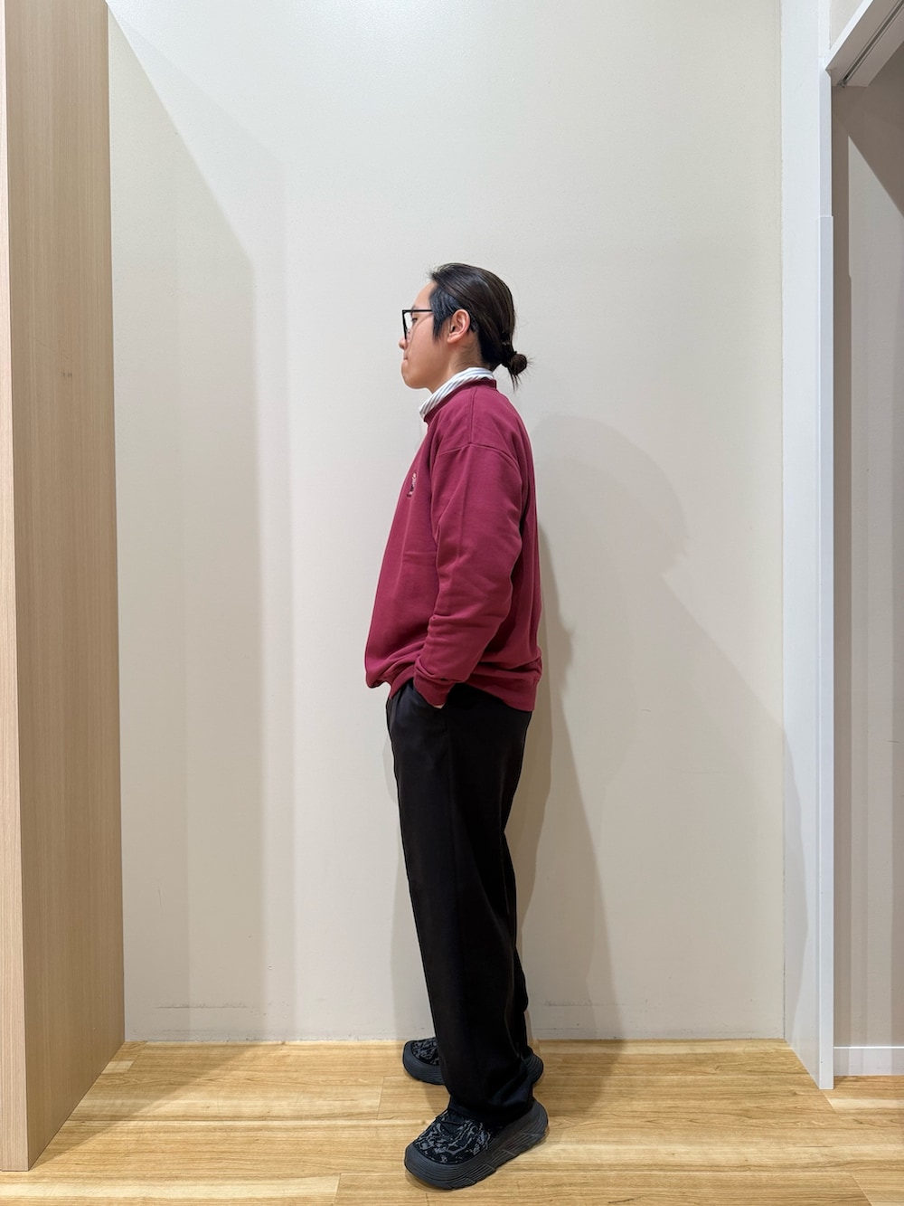 ボトムはきれいめなシルエットでバランスをとっています。