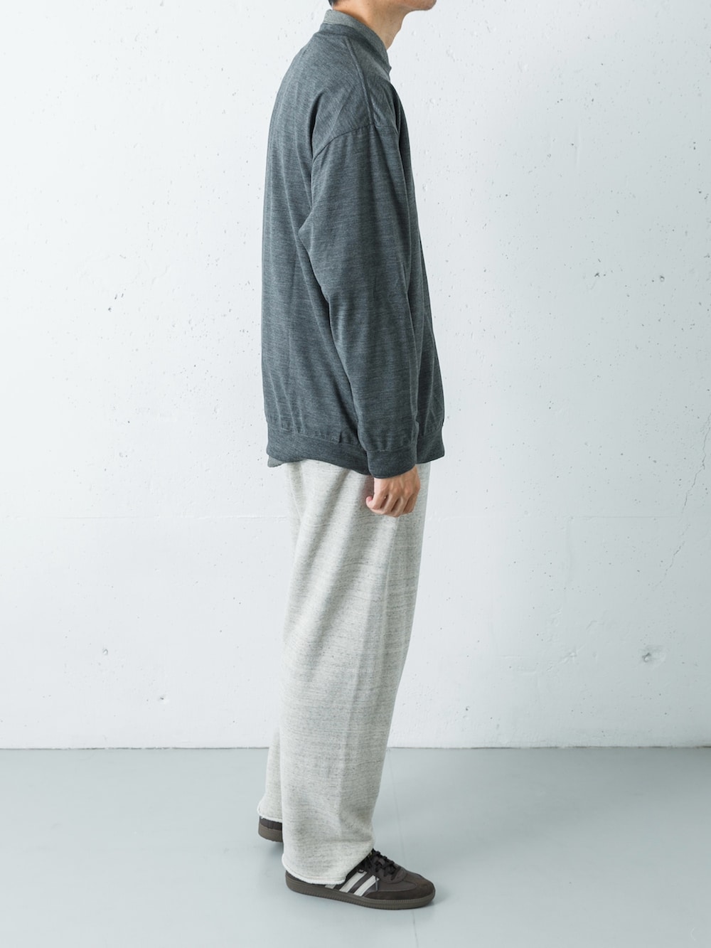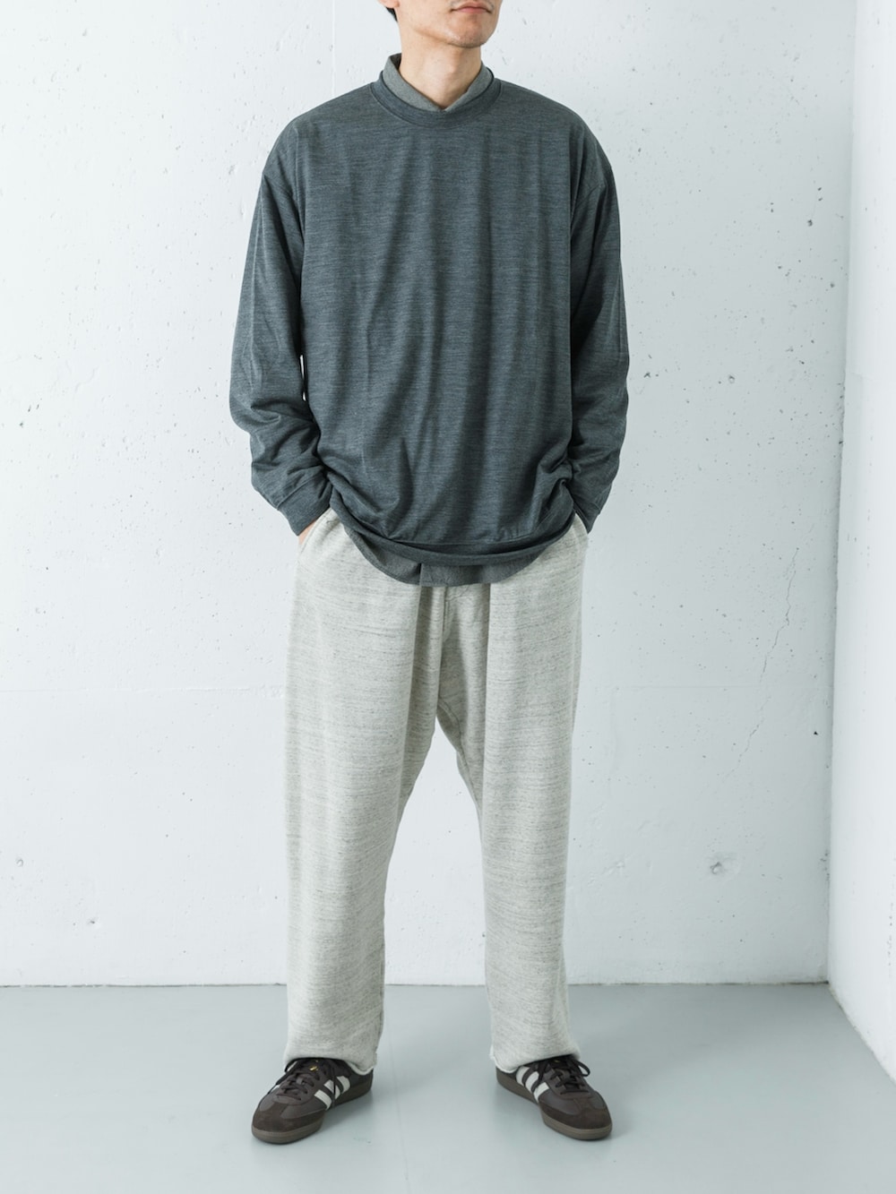 インナーには生成りのスウェットを挟み込むことで、クリーンで優しい印象を与えます。