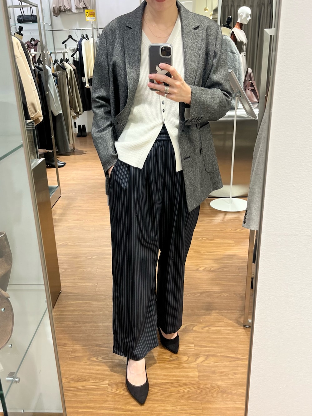 腰回りは隠れるのにボタンの位置が上なので、足長効果があります◎