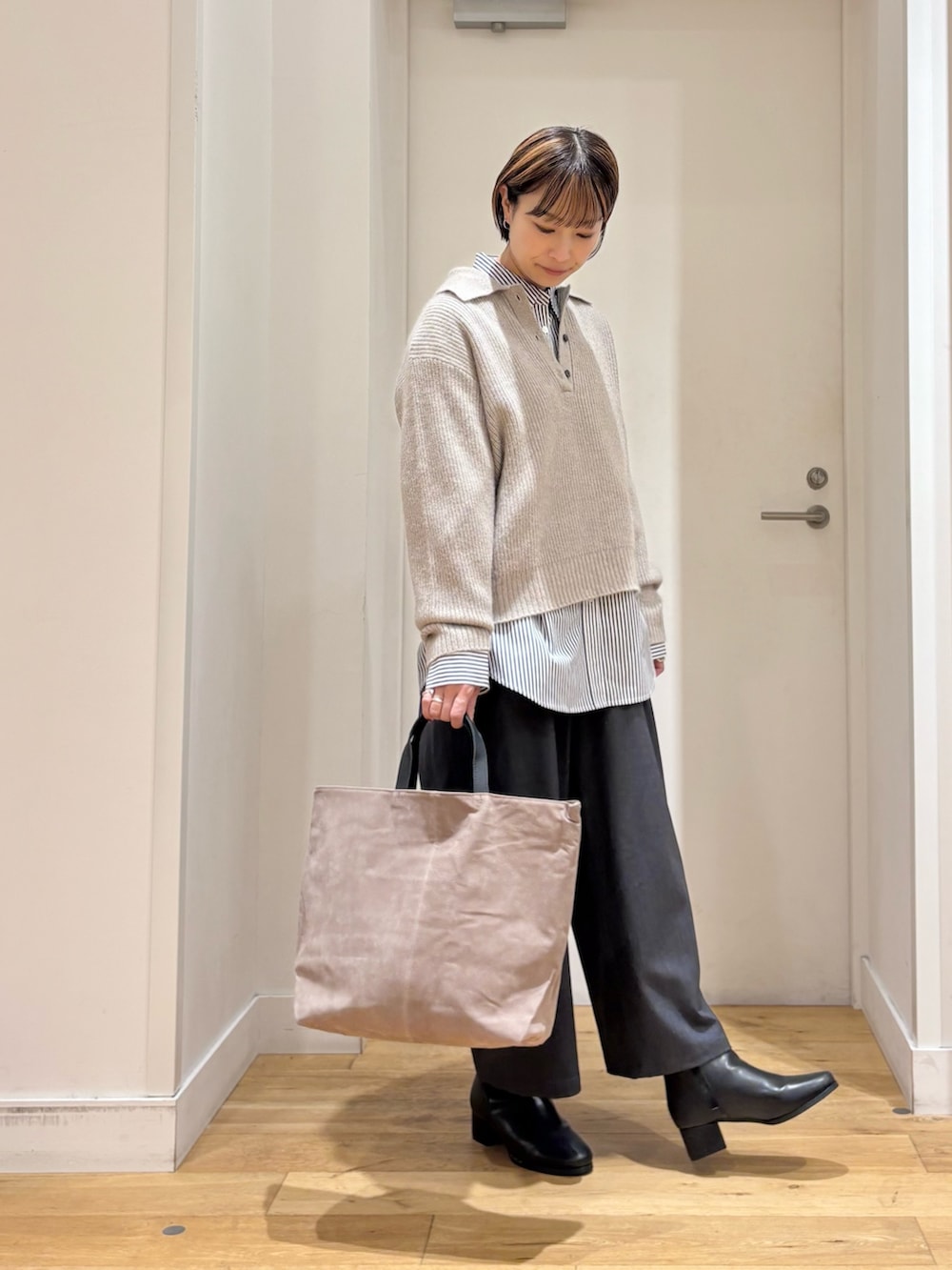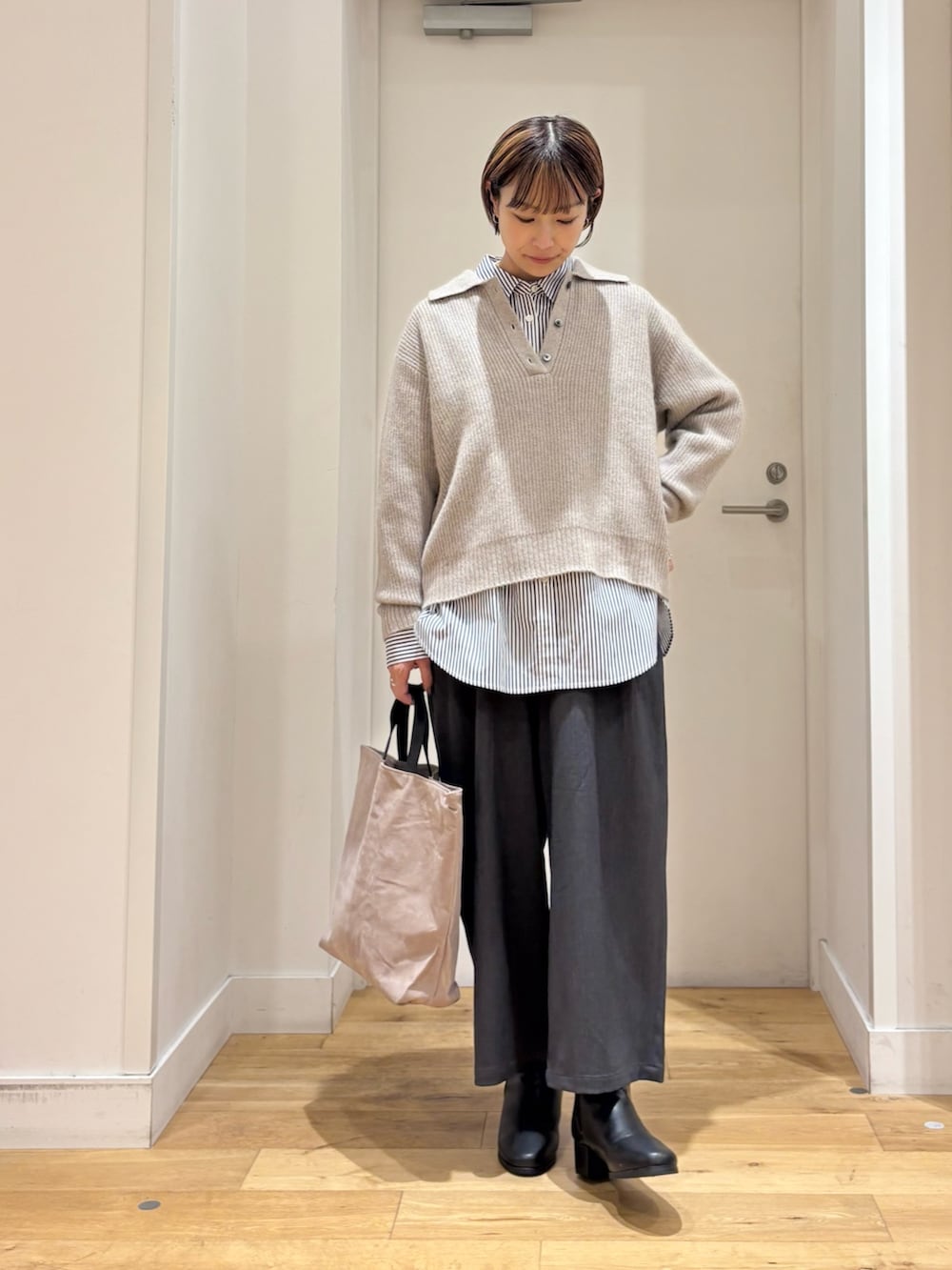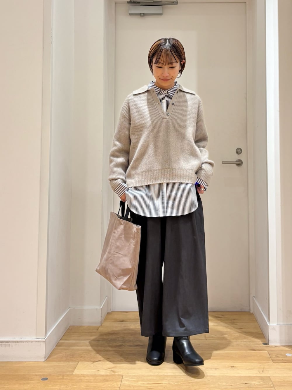 ボタンの開け具合いで雰囲気も変えて着回しを楽しめます!