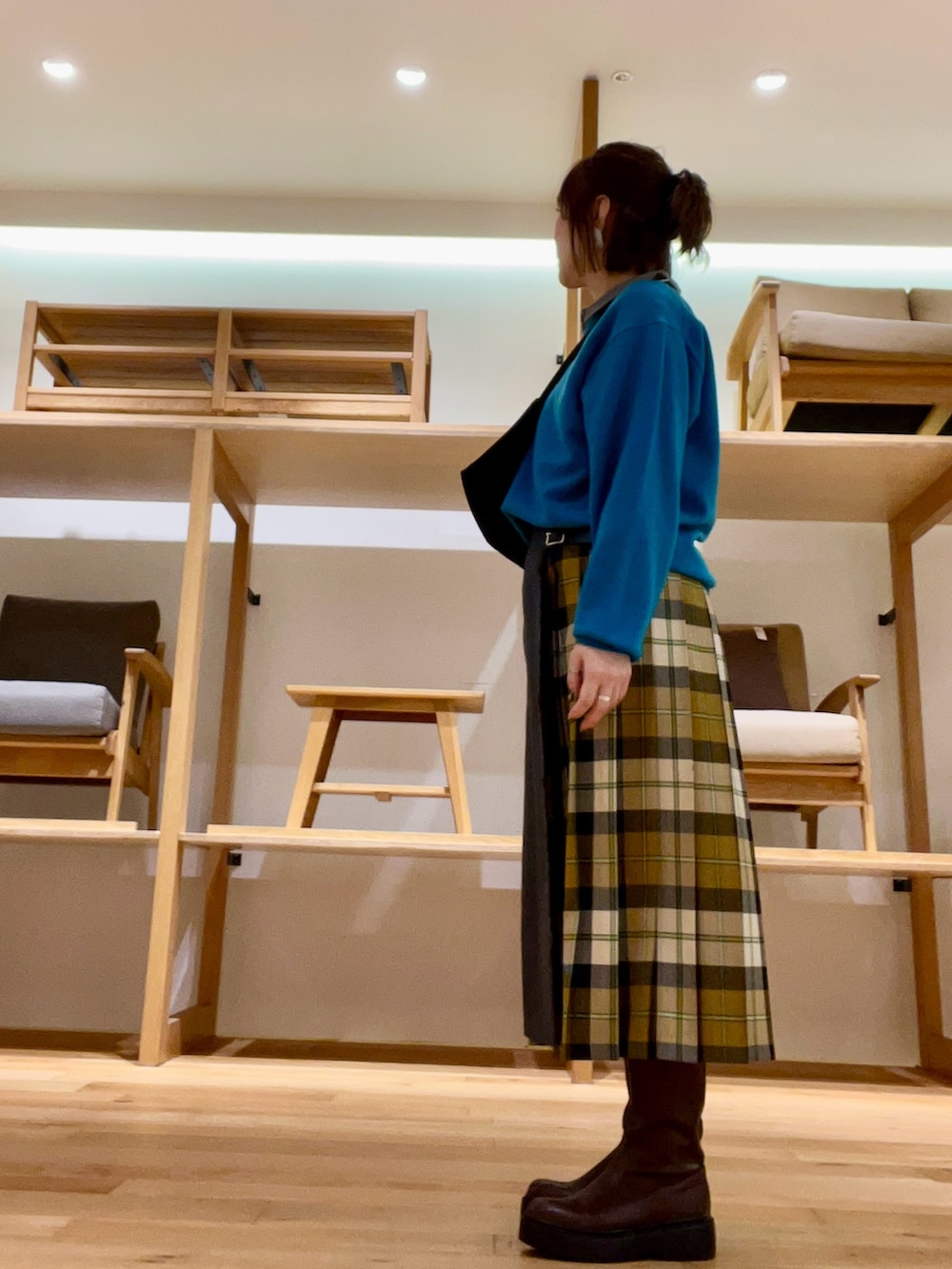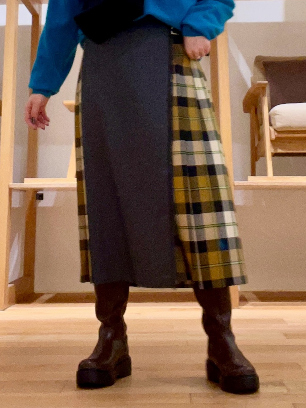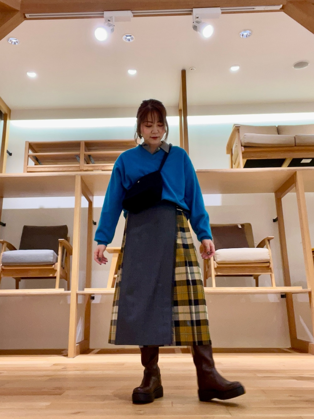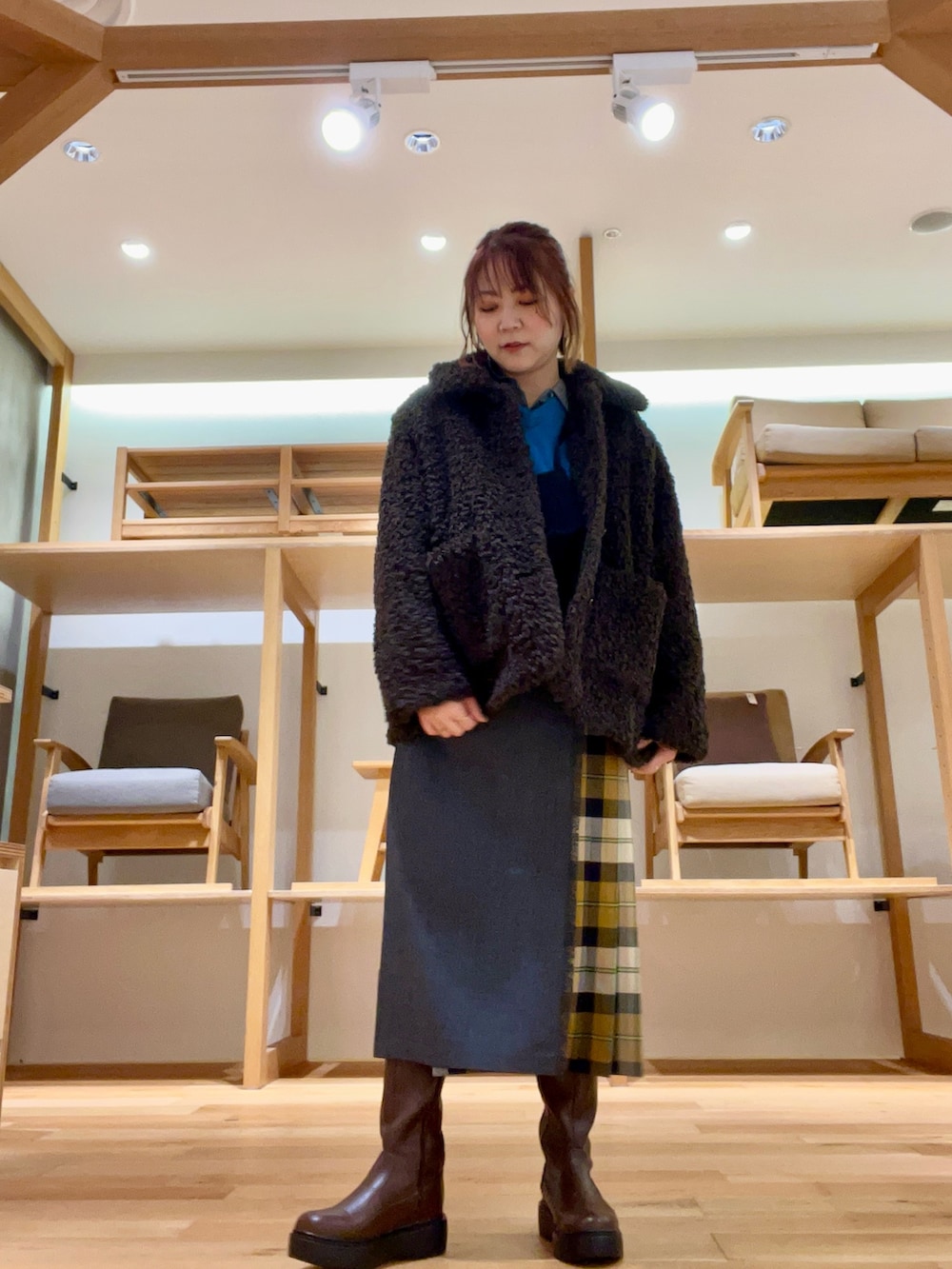 着丈がやや短くなるのでロングブーツ合わせも◉