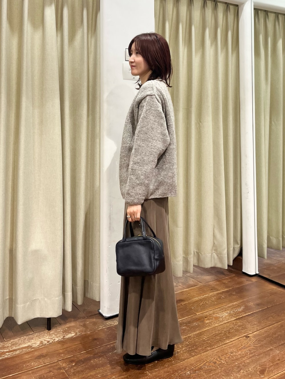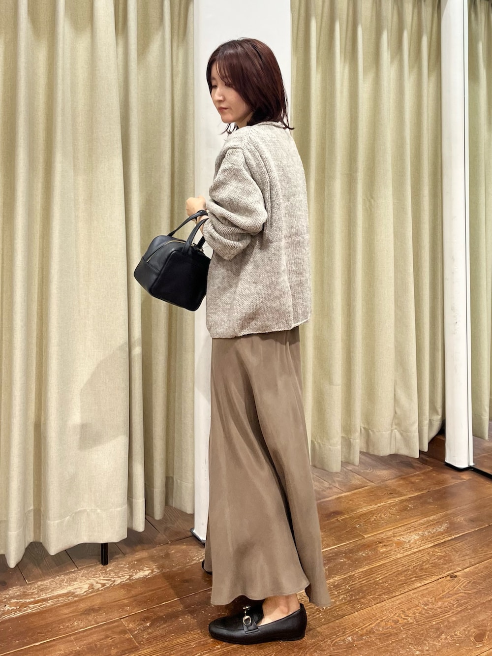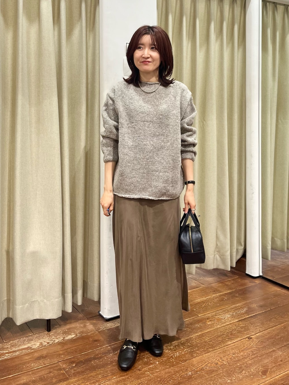 スカートは何度も登場しているURのキュプラスカートで、シルエットが綺麗でおすすめです!リアルバイしました◎