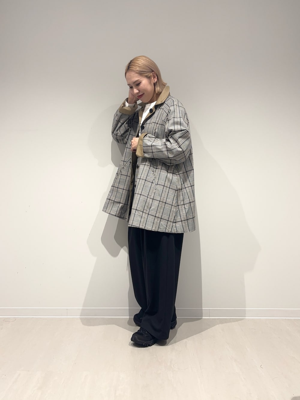 お袖を折り返してチラッとチェックを見せるのがおすすめです◎腰回りがすっぽり隠れるシルエットで中物を選びません◎