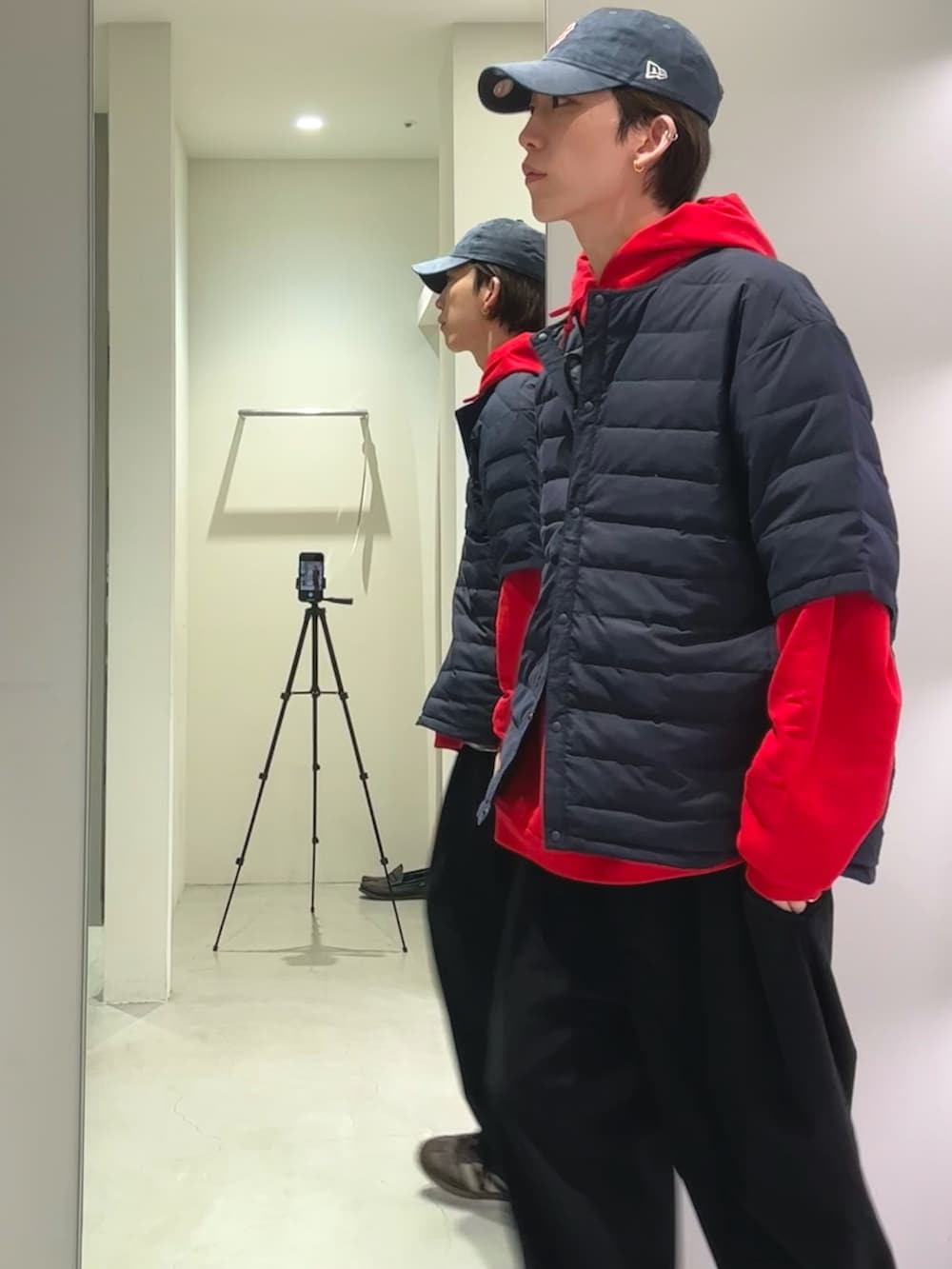 半袖ダウンと重ね着して大人のストリートスタイルに。