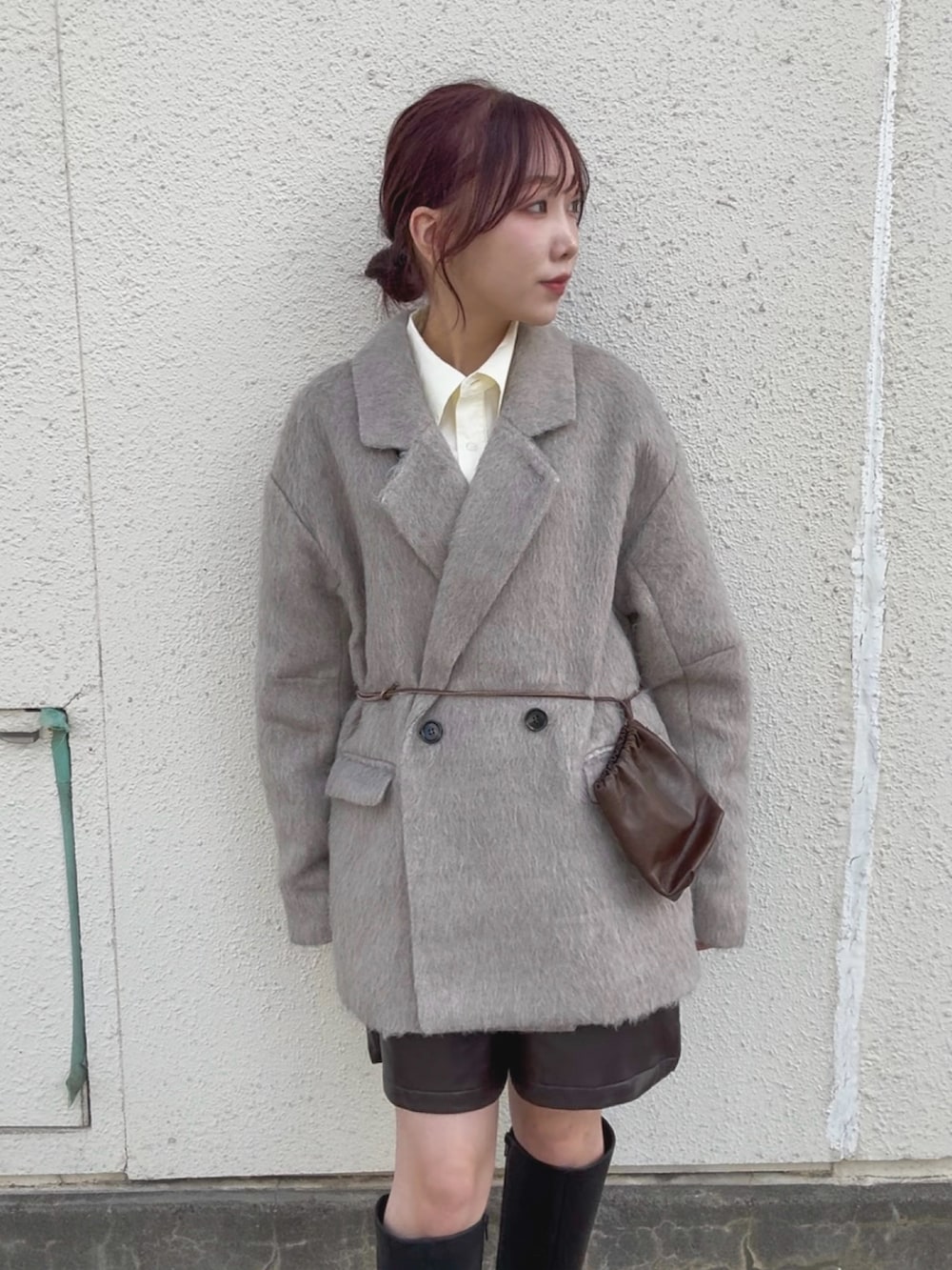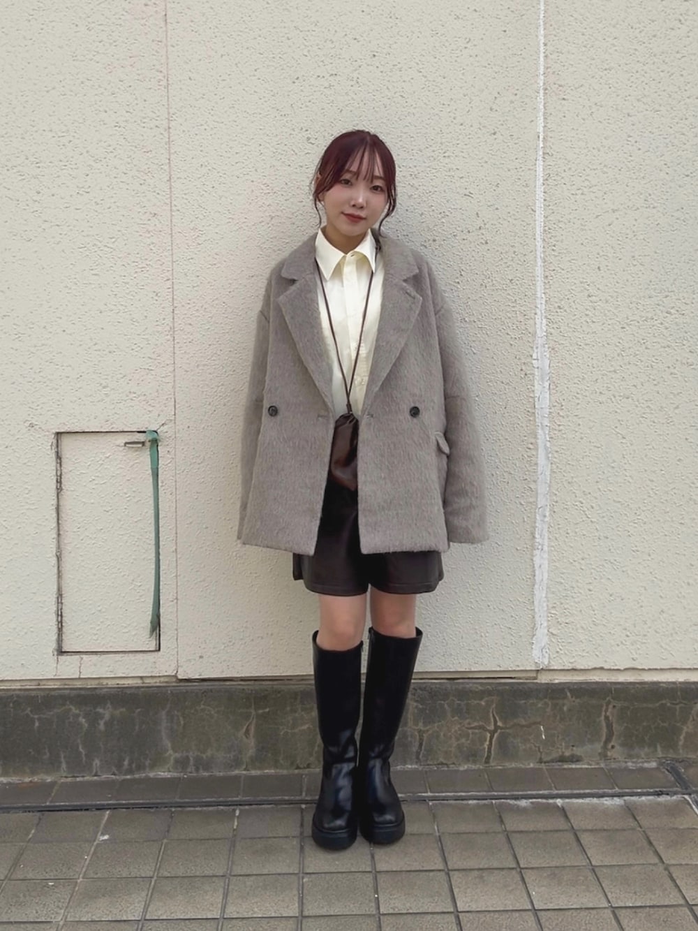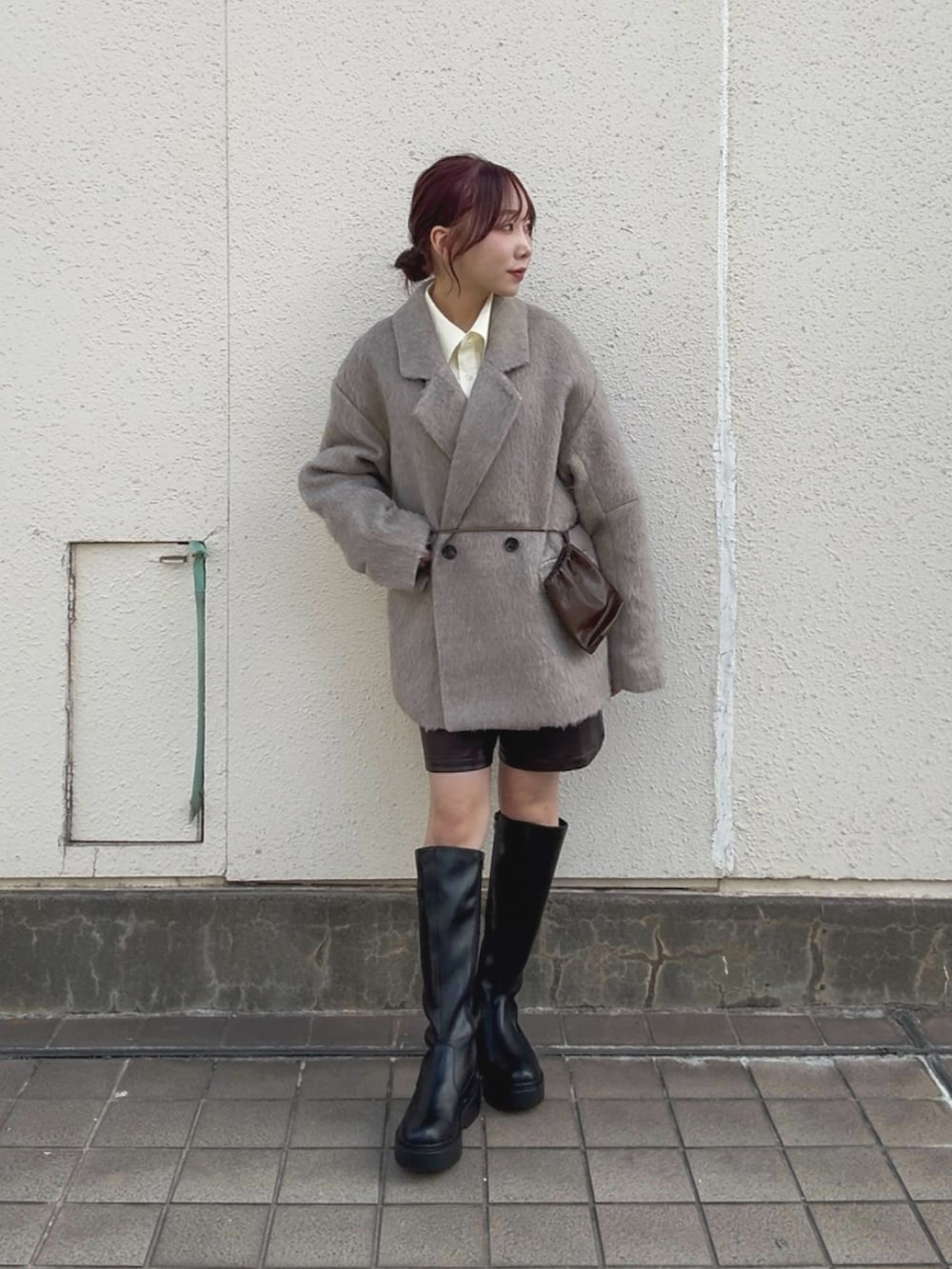 ショート丈のアウターなので、ワイドデニムやロングブーツ合わせでもすっきり見えます!