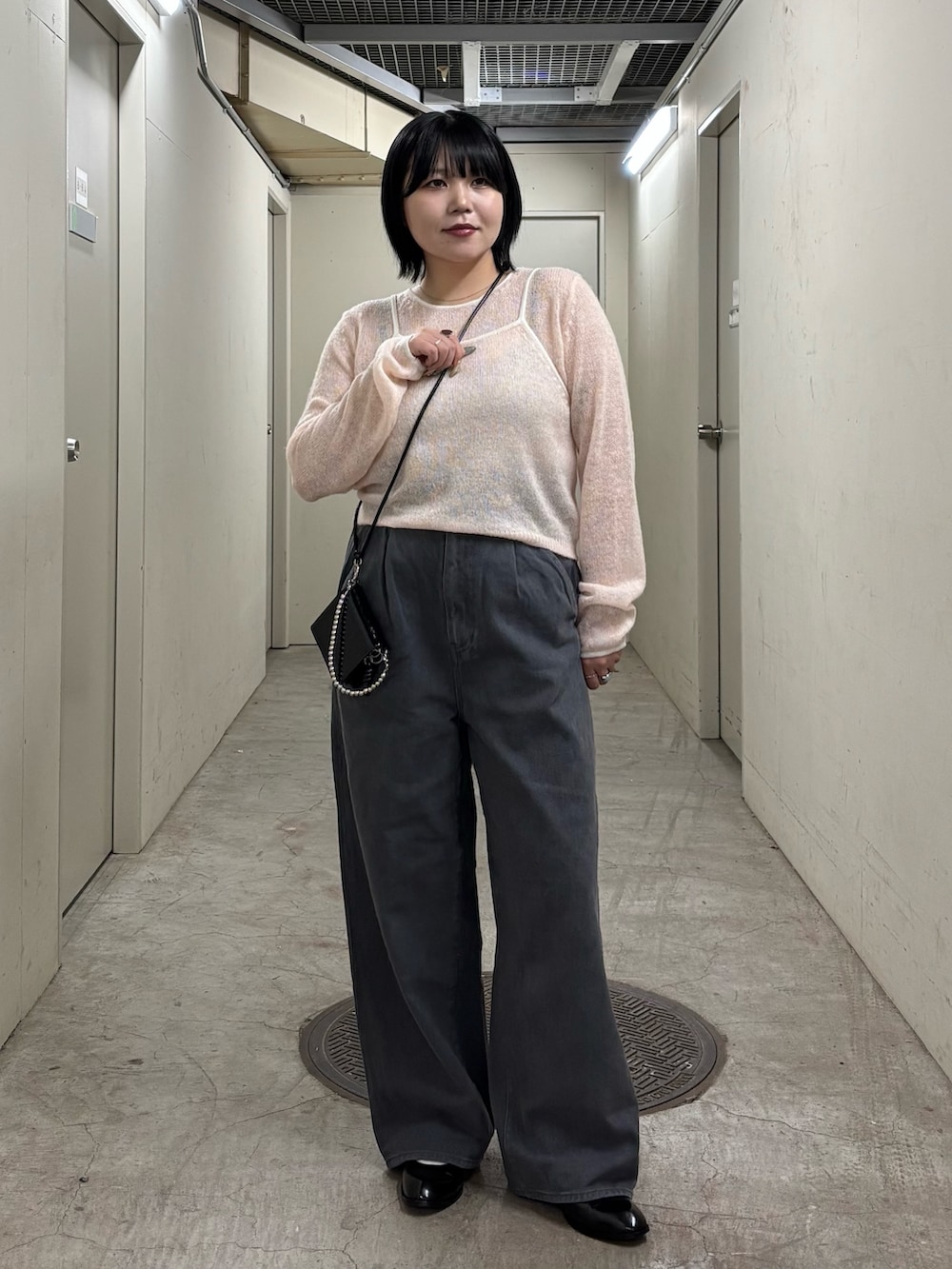 着てみた感じ、身体のラインを拾わないゆとりのあるサイズ感で上半身裸ムチムチの私的に嬉しいポイントでした₍ᐢ ɞ̴̶̷.̮ɞ̴̶̷ ᐢ₎キャミソールの着丈もインせずに使えるので色んなボトムスと合わせやすそうです!!