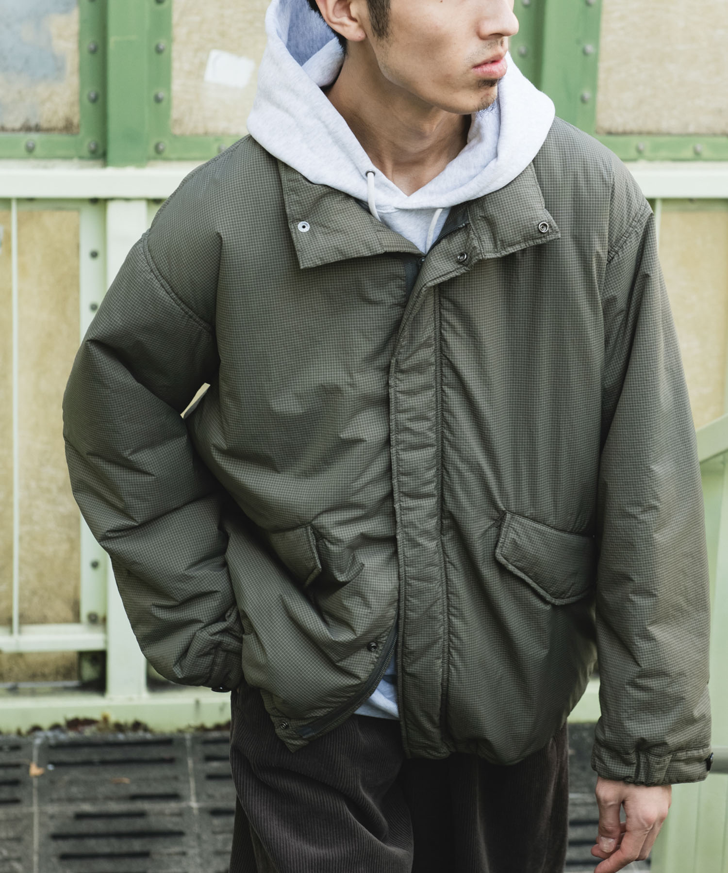 ナイロン素材に細かなグラフチェックをあしらった、軽やかな着心地です◎