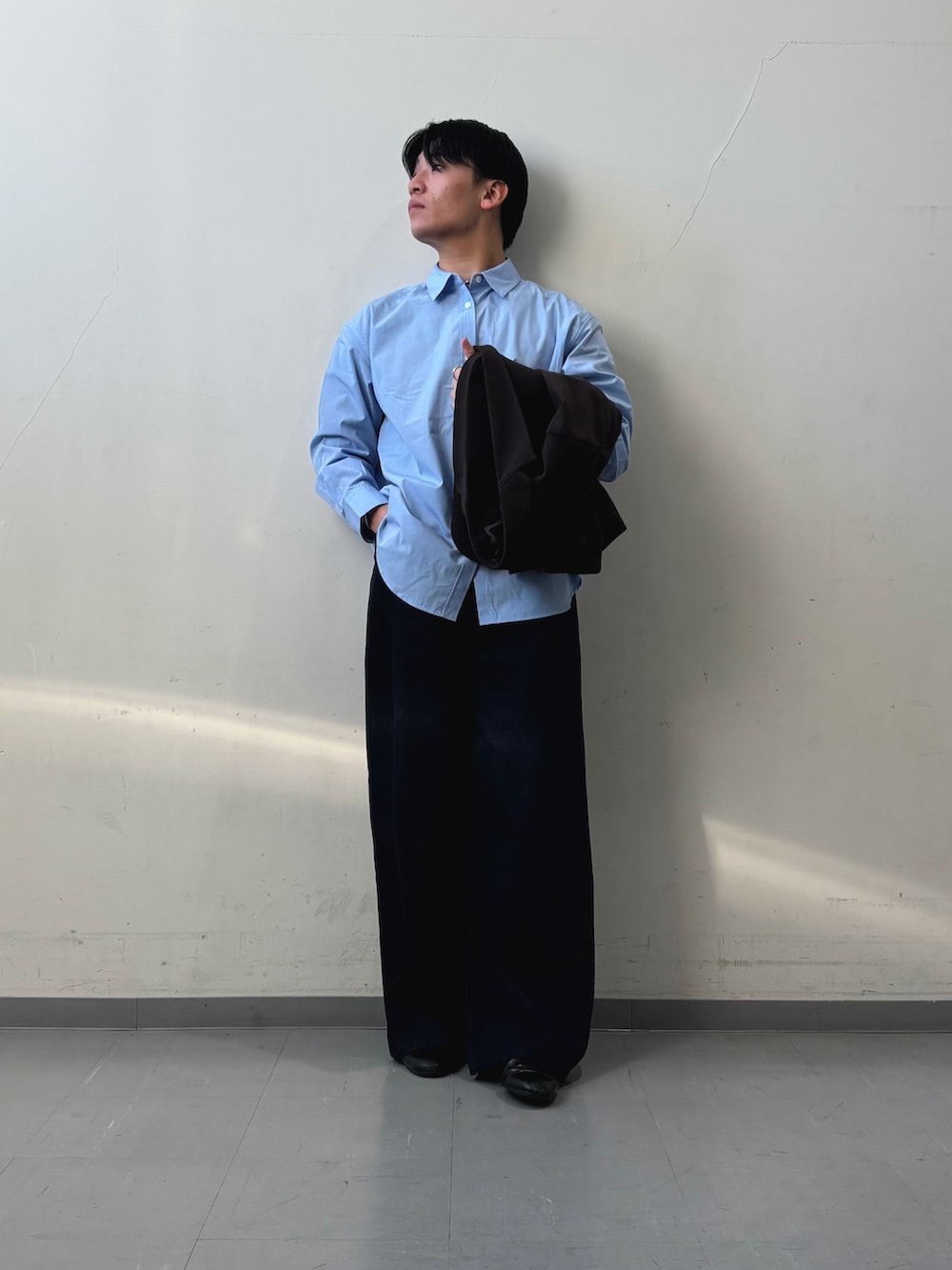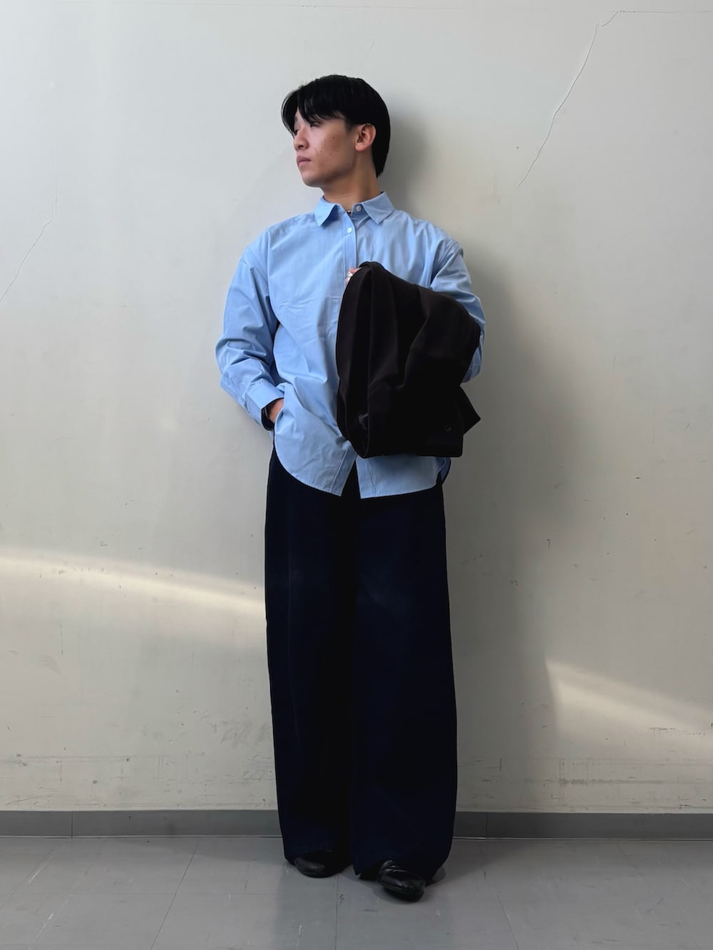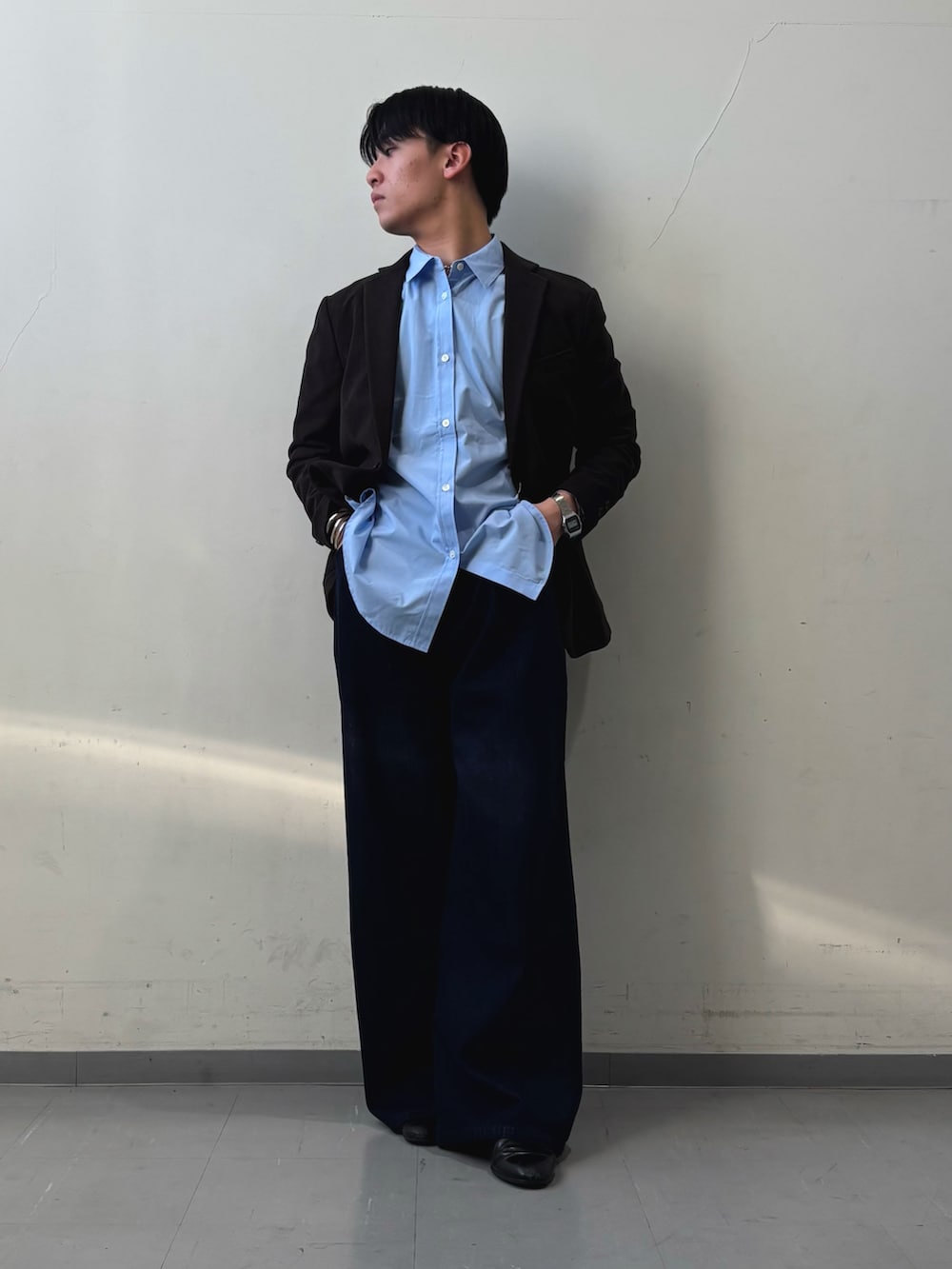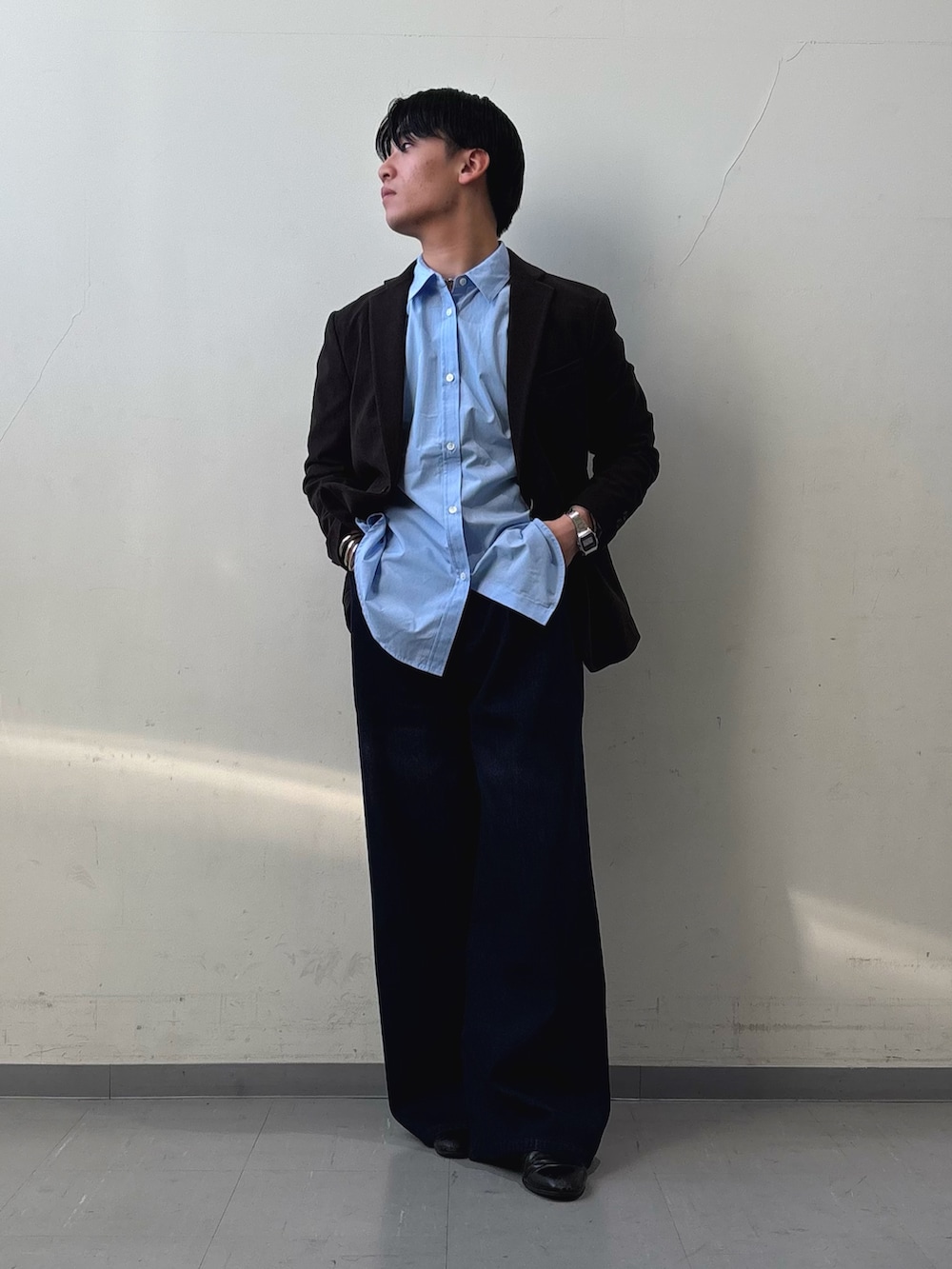 ジャケットは、LIFE STYLE TAILOR のコーデュロイジャケットを着用しました!大人らしさを出すためにブラウンにしました!