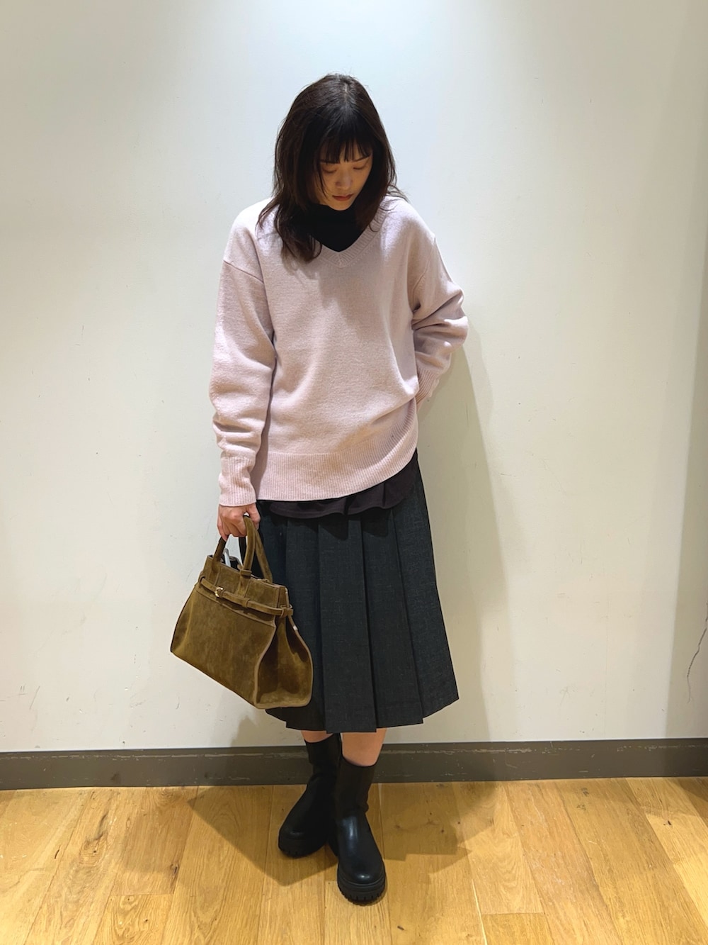 膝下までのミドル丈でパンツとレイヤードはもちろんブーツ合わせで、秋らしいスタイリングに🧶