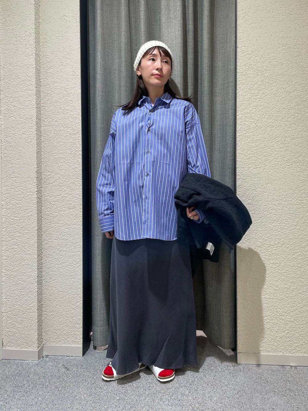 毎回人気のコットンストライプレギュラーシャツ👔 身幅はゆったりと、着丈は長めで体型をカバーしつつ着るだけでこなれてくれます。1枚でもサマになりますし、ジャケットやニットを重ねてもポイントに!