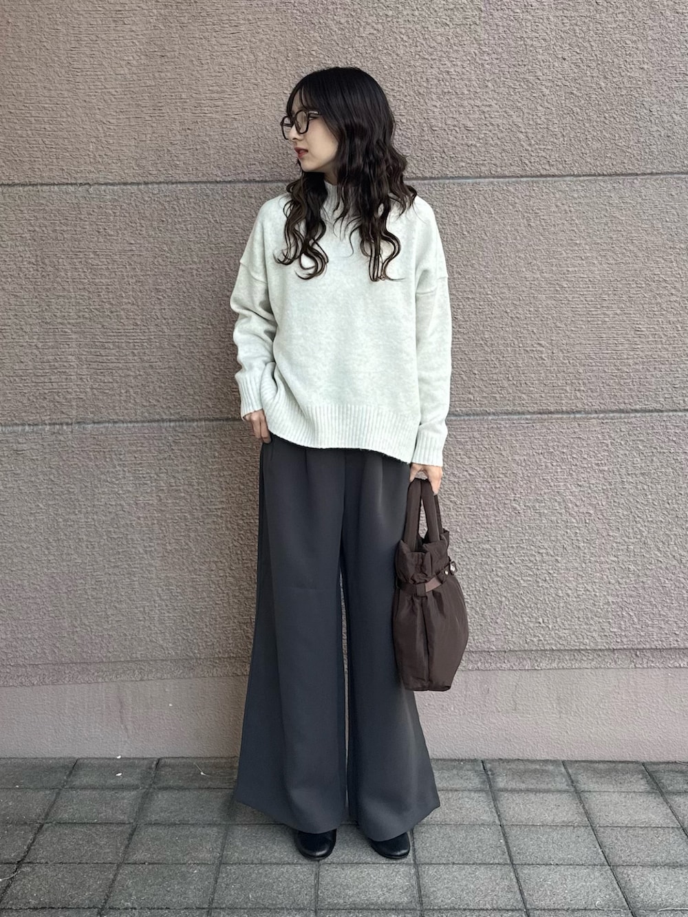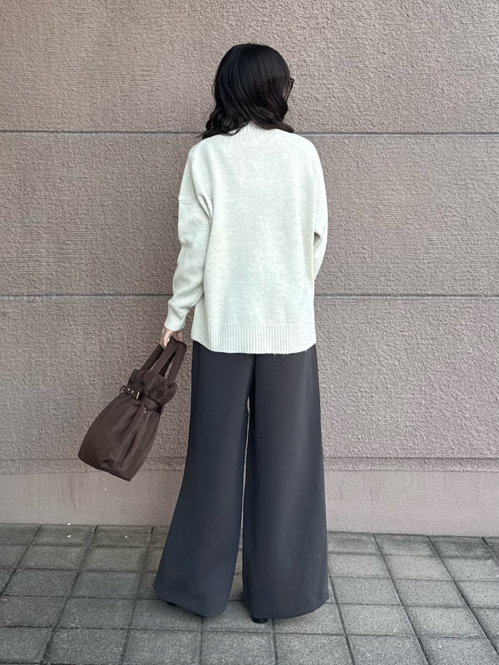 ボトムスはワイドパンツでシルエットと色味が可愛いアイテムになっています!着回ししやすいのでおすすめです!