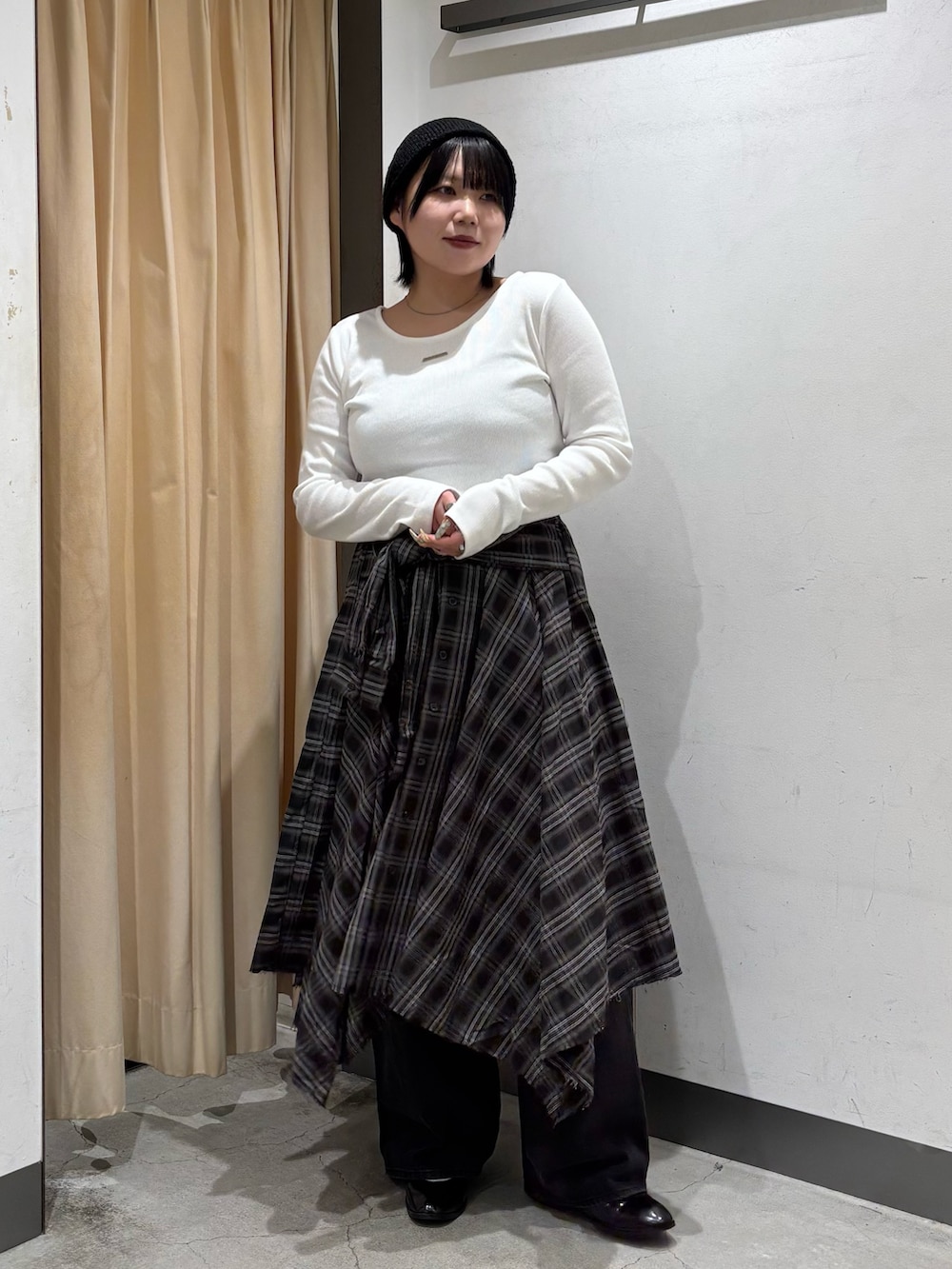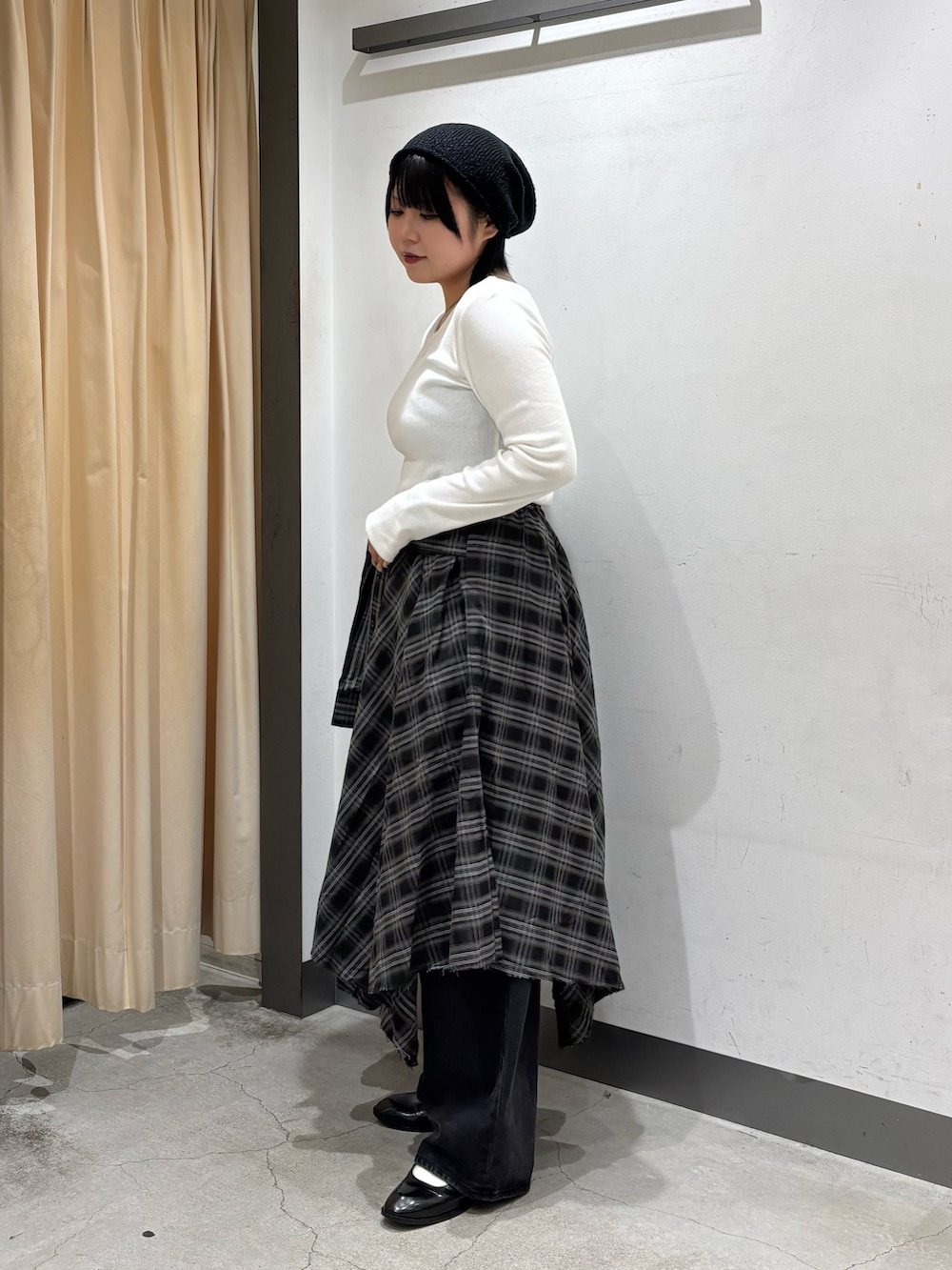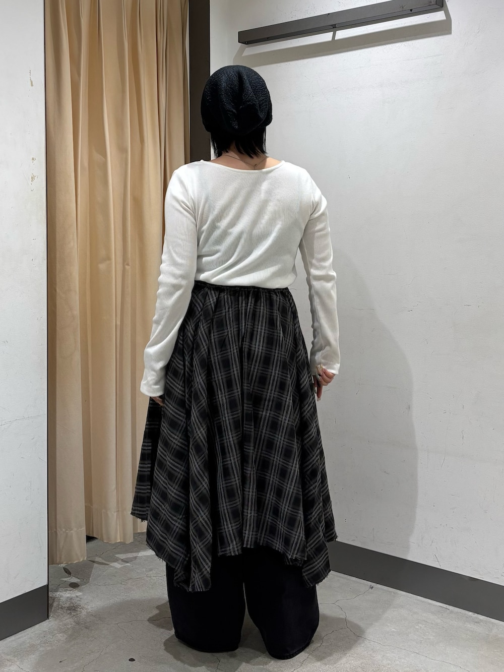 履いてみた感じ、ウエストは後ろゴムなのでゆったりと余裕がありました!丈の長さはスカートとして履くとふくらはぎの一番太い部分が強調されたので、パンツをレイヤードするorミドル丈ブーツで隠すといい感じでしたദ്ദി ῀ᢦ῀ )