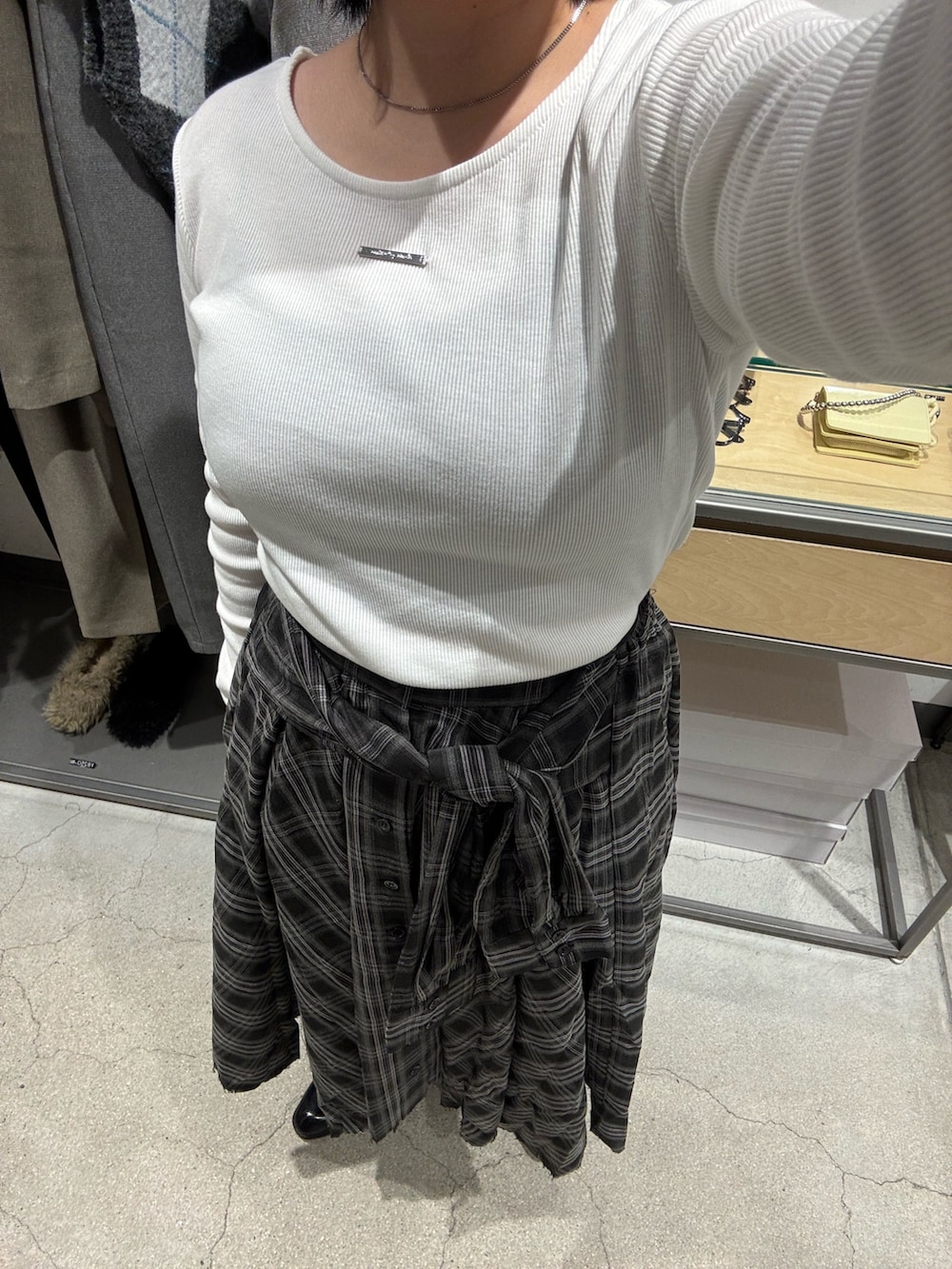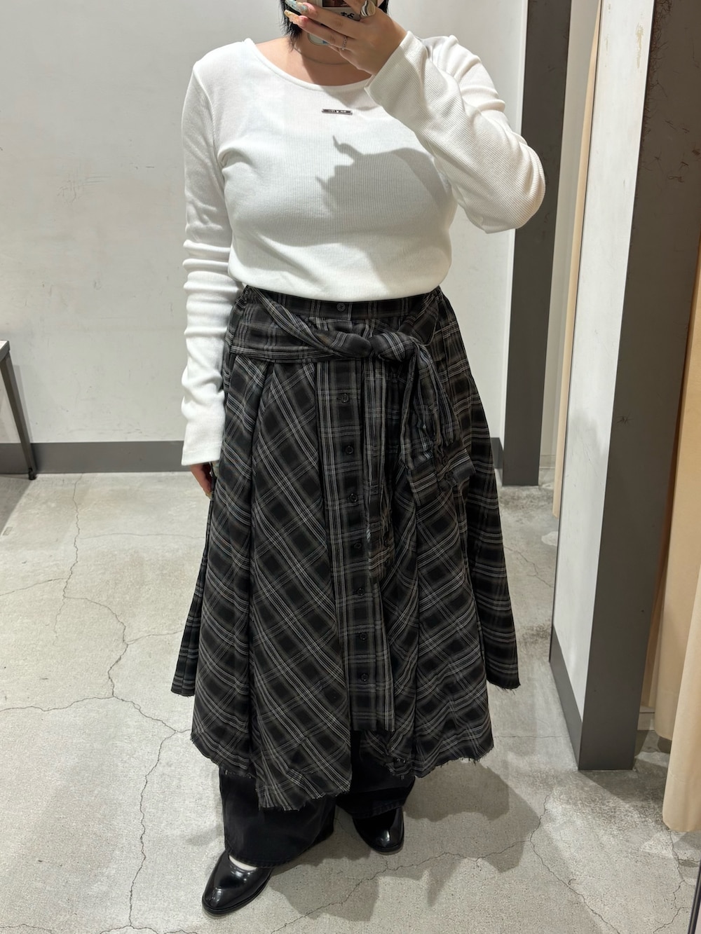春も好評だったチェックスカートがAW仕様になって登場です✌︎裾がイレヘムデザインになったり、丈が少し短くなったのでレイヤードスタイルも可能に!!