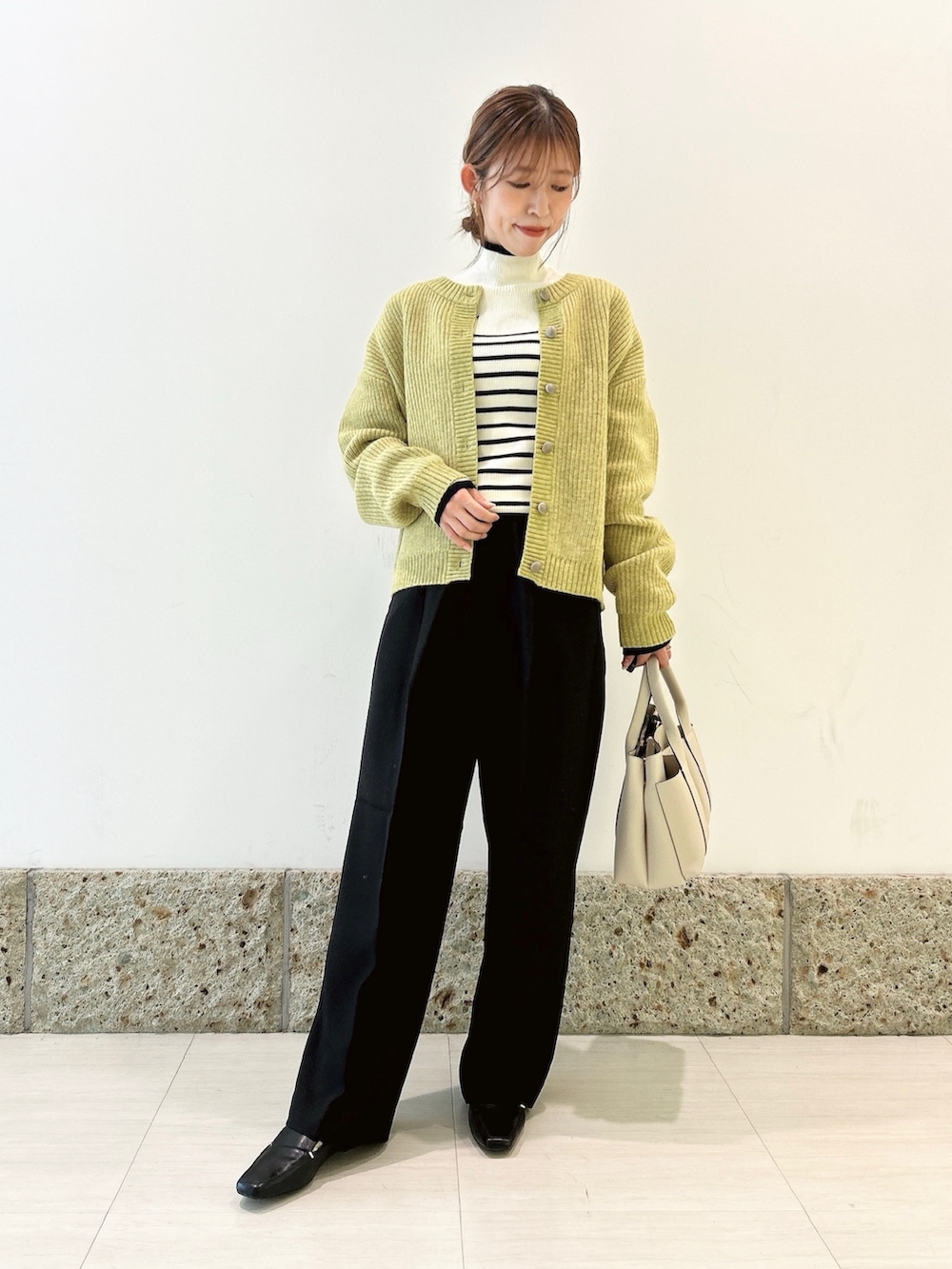 ピスタチオカラーのカーディガンを主役にコーディネート💚