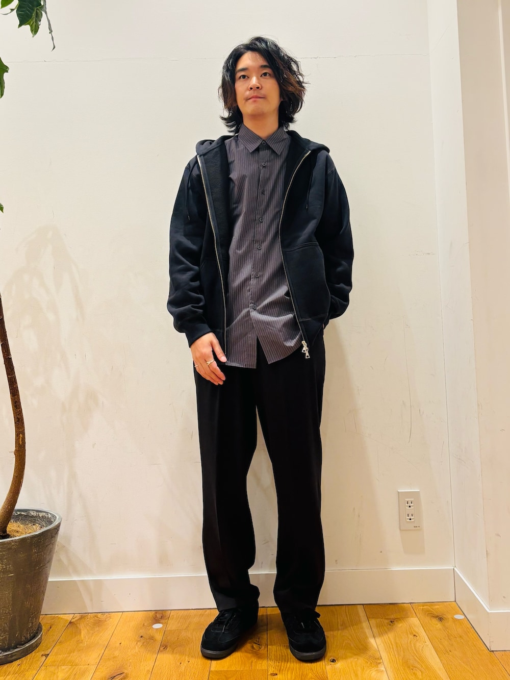 ラフなスタイルもオススメですが、シャツで合わせてもきっちり感を出すのもオススメ。