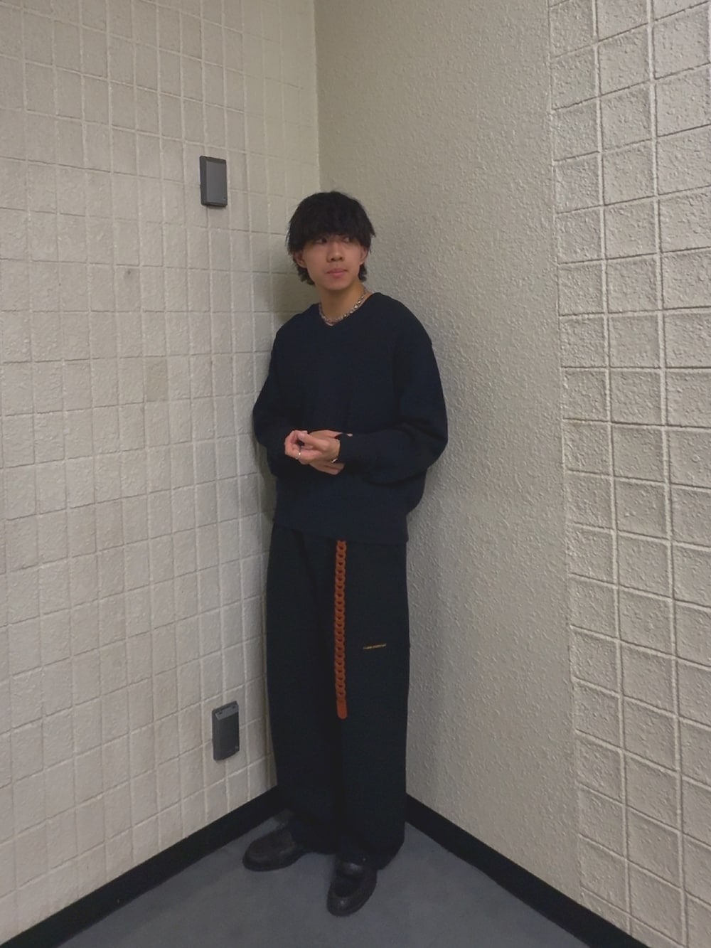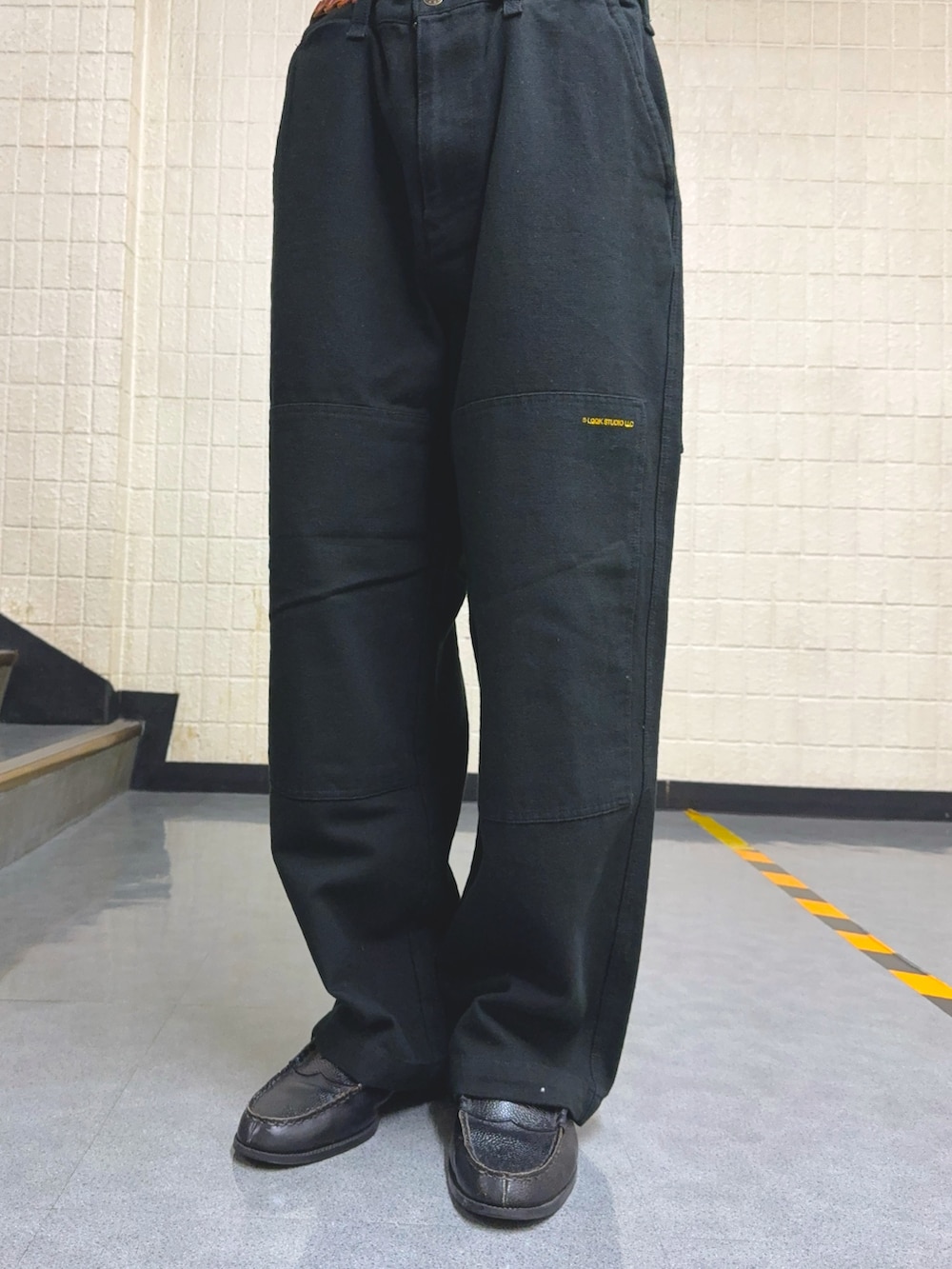 パンツで履いているLQQK Studioのダブルニーパンツはとてもキレイなシルエットでおすすめです!
