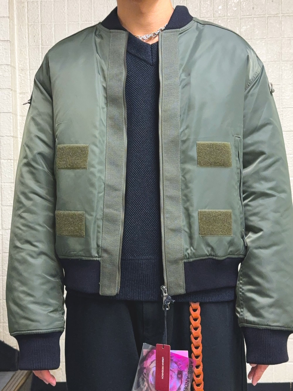 ANDERSON BELLのMA-1を使ったコーデです。全体的に細かい装飾がされており、他のMA-1と差別化された一着となります。