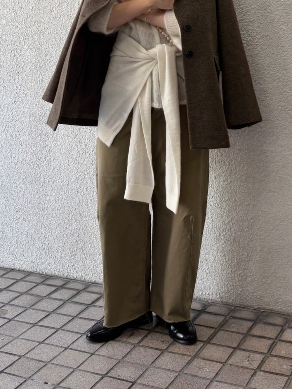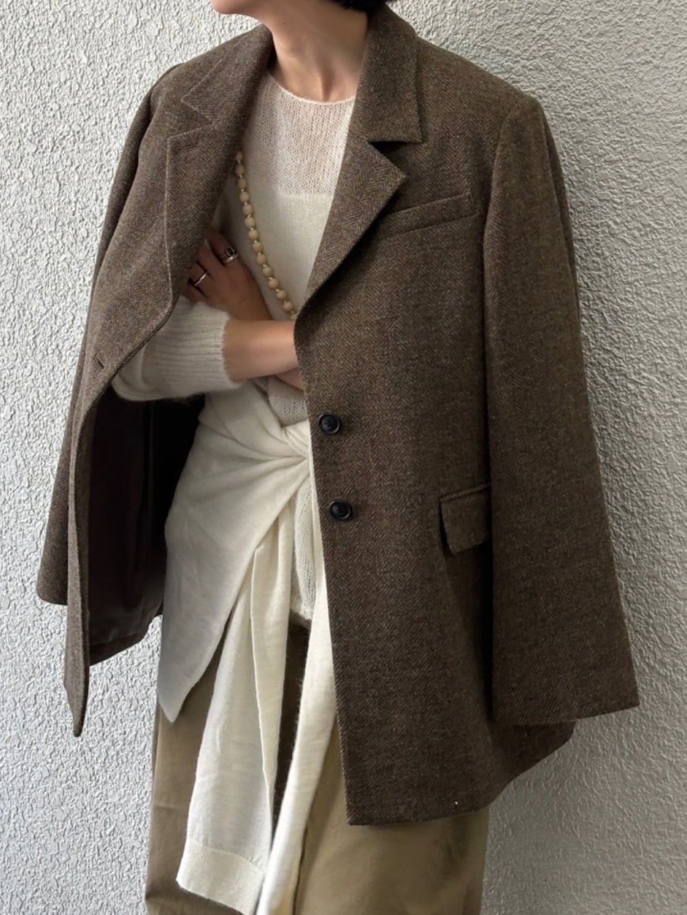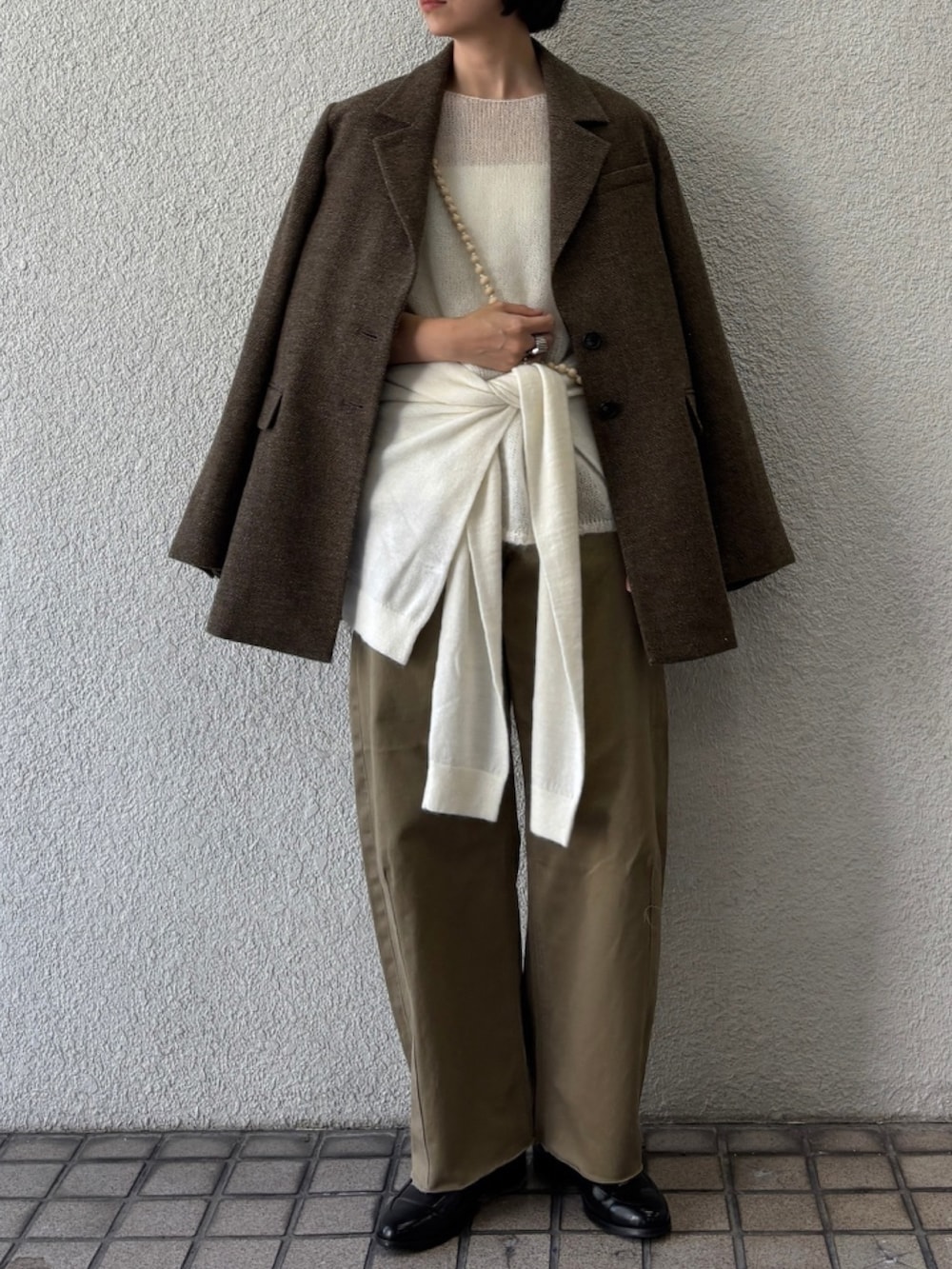 オーバーサイズでゆったりとしたシルエットは、中に厚手のニットも着込めます。アウターとして真冬まで活躍する、頼れる一着です。