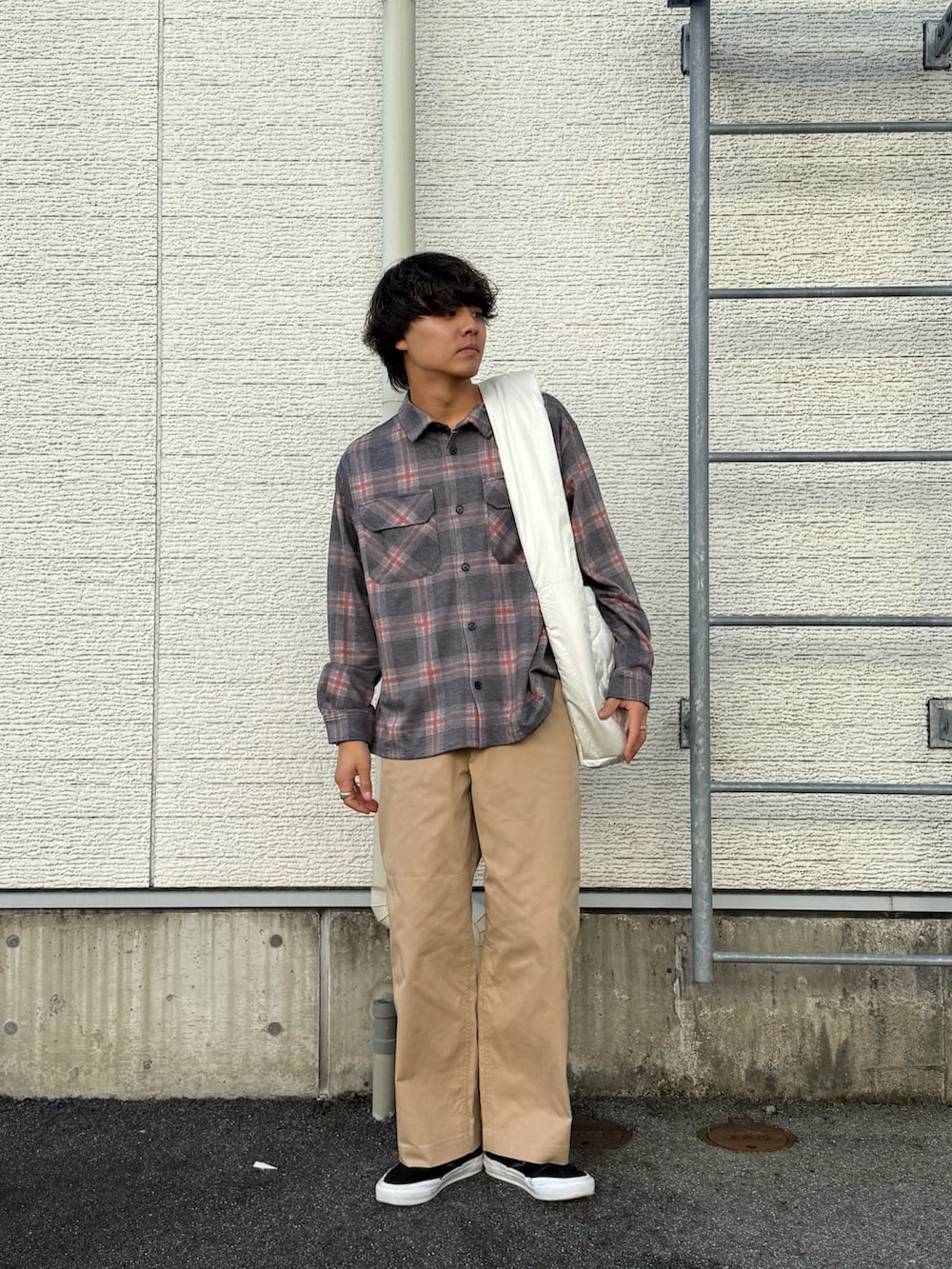 カジュアルなパンツ、シューズと合わせているので柔らかい雰囲気が出ます。