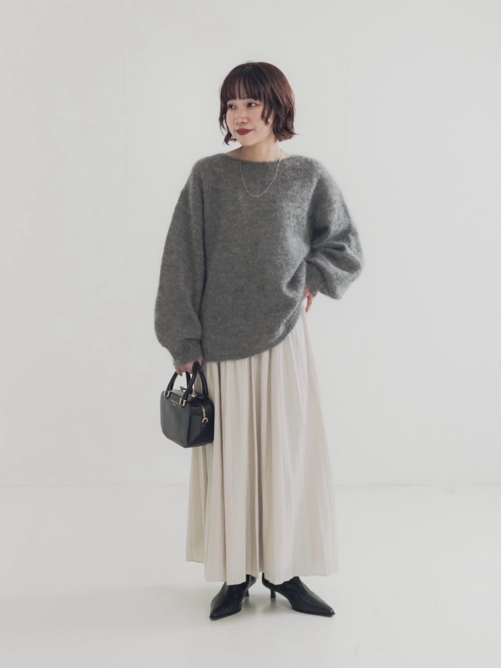 広がりすぎないシルエットなので、ボリュームのあるニットとゆったり合わすのも◎