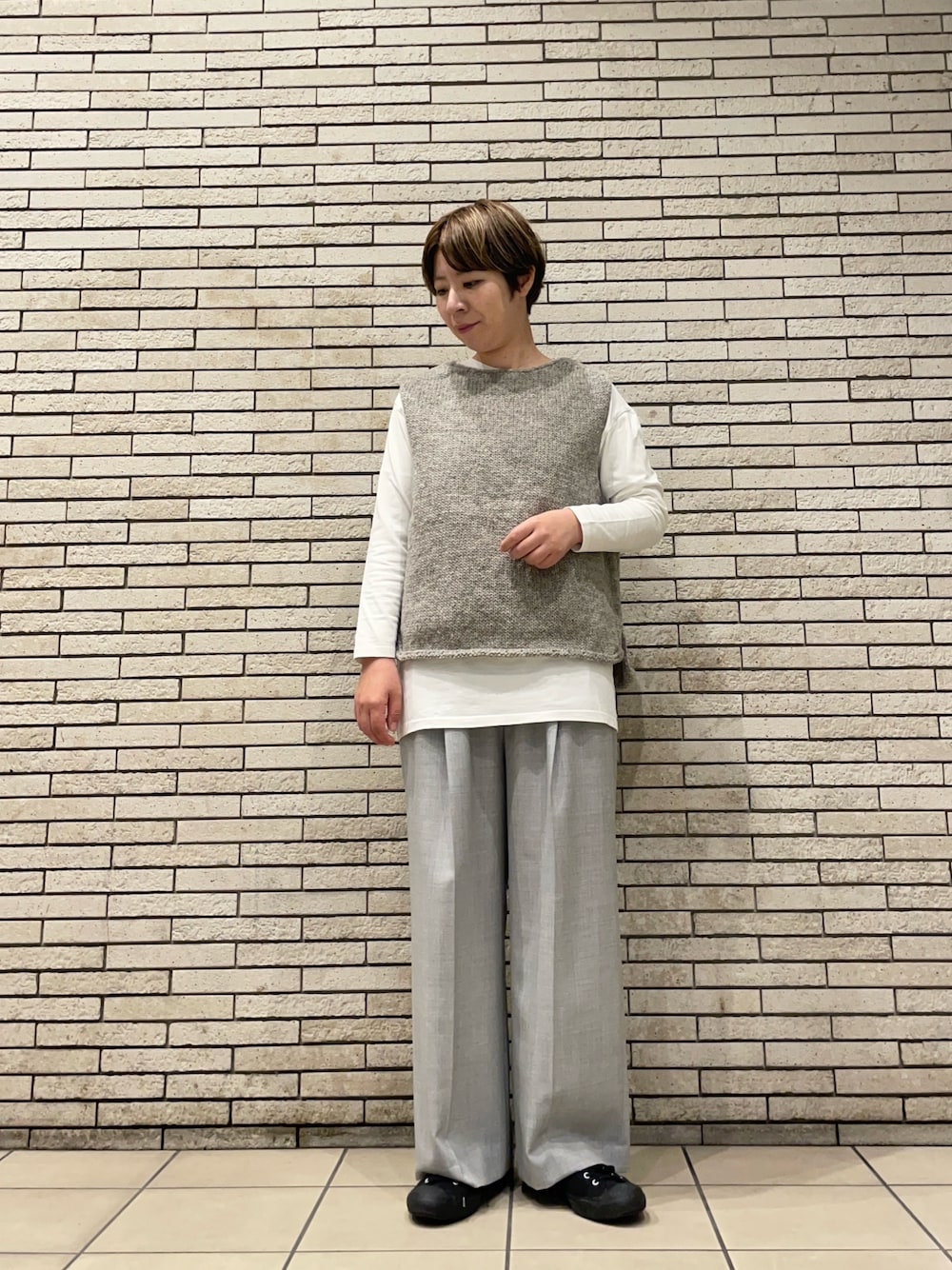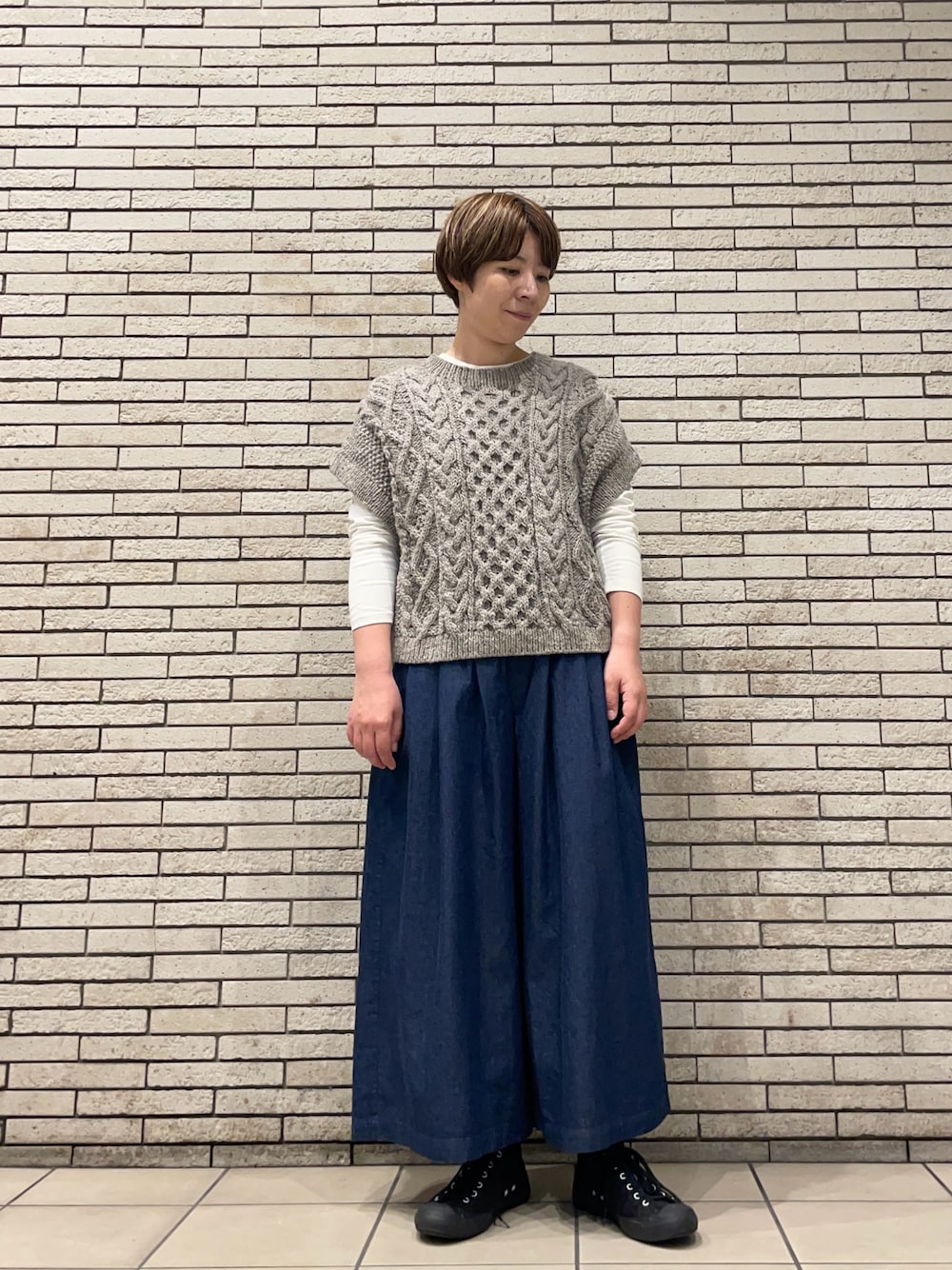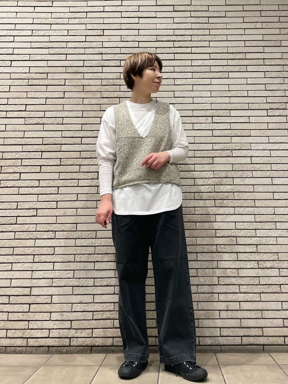 今回はデニムと合わせたシンプルカジュアルです。デニムはウエストがゴム仕様で、楽な着心地です。ぜひお試しくださいませ💐