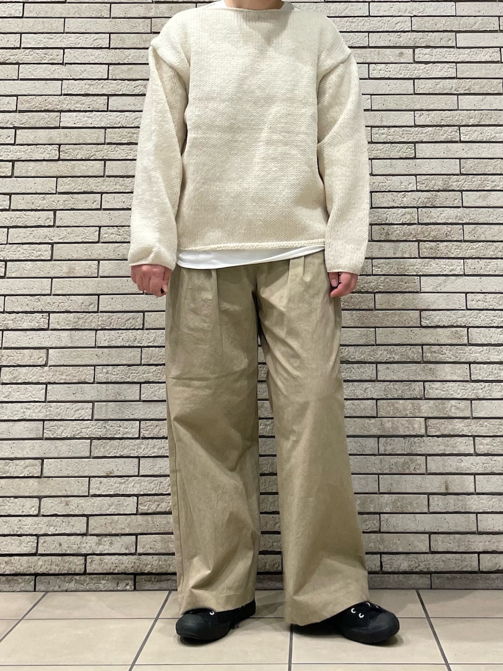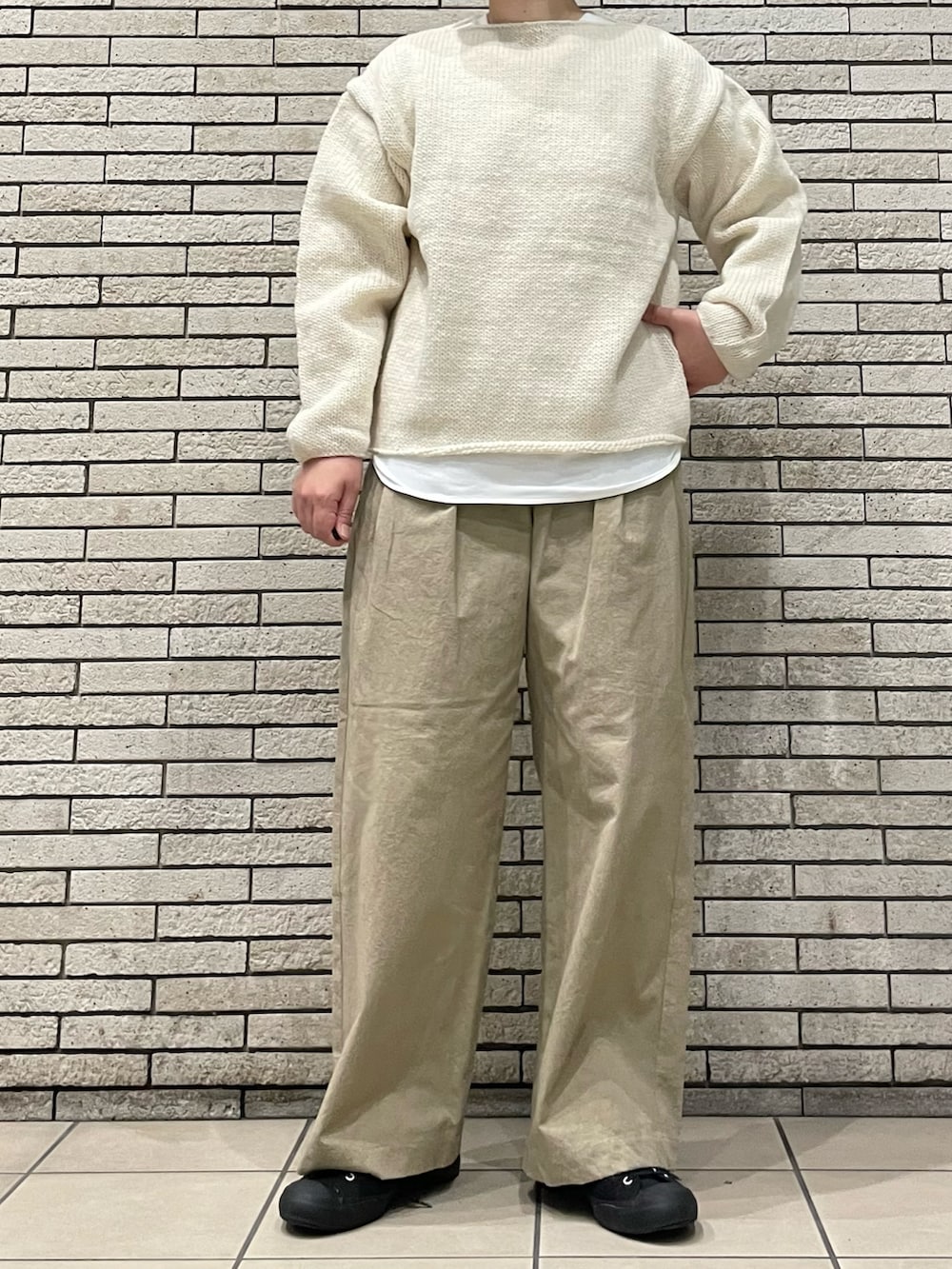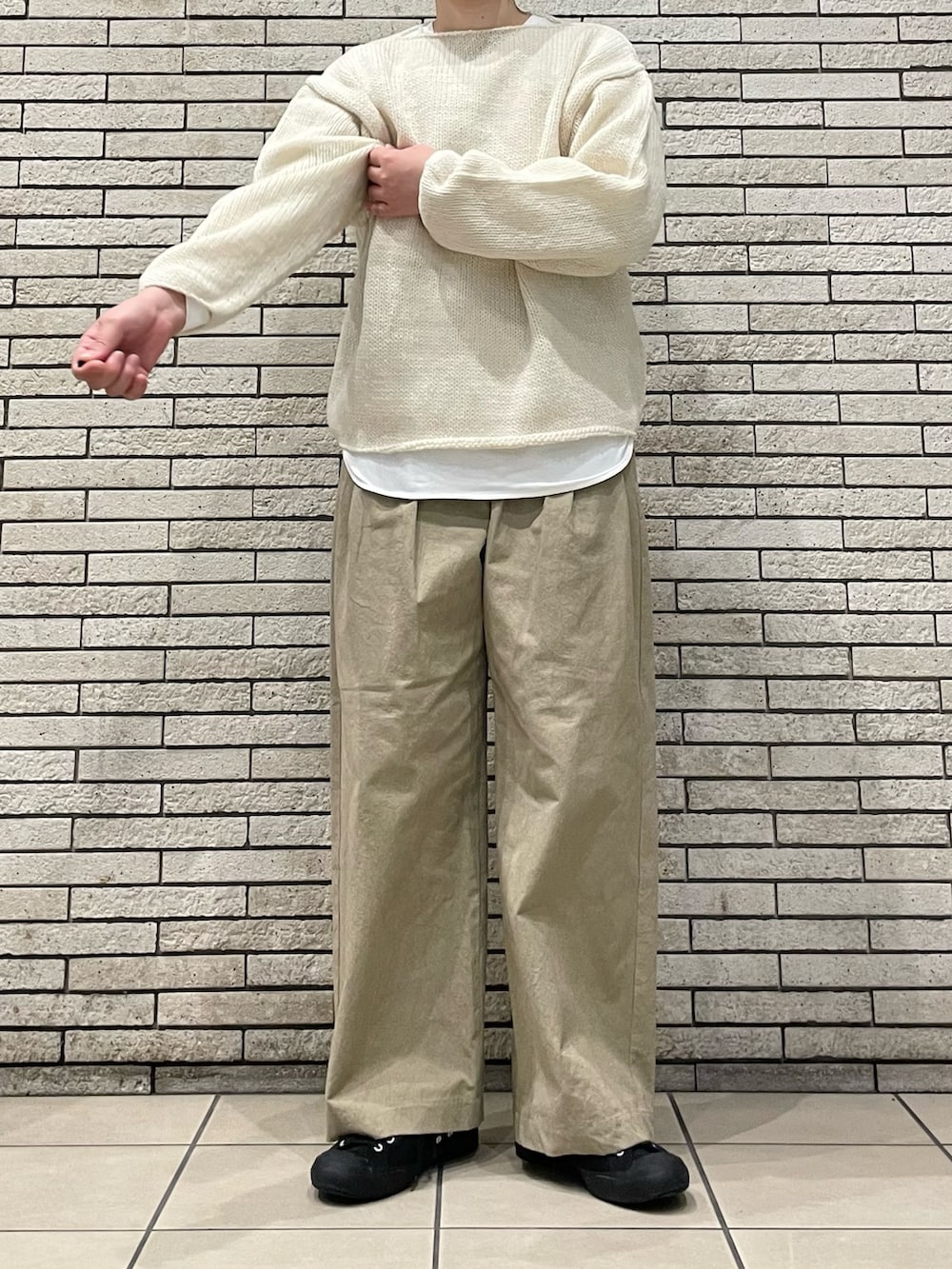 これからの季節には、インナーにクルーネックのカットソーを合わせたり、シャツやワンピースの上に重ねていただくスタイリングもおすすめです。