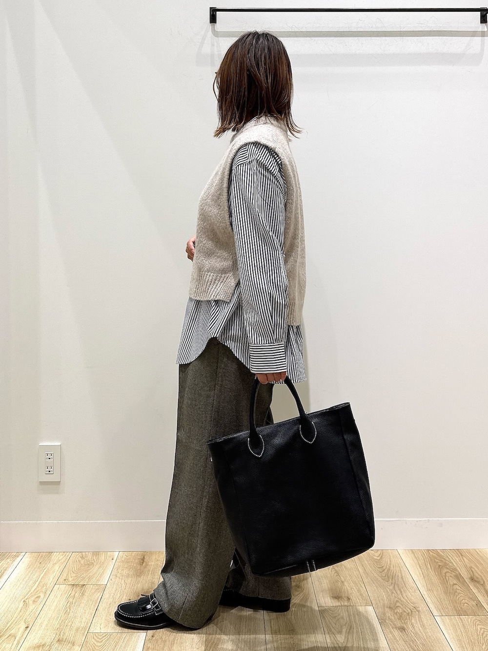 オーバーサイズのシャツを着ても合わせやすいです💡