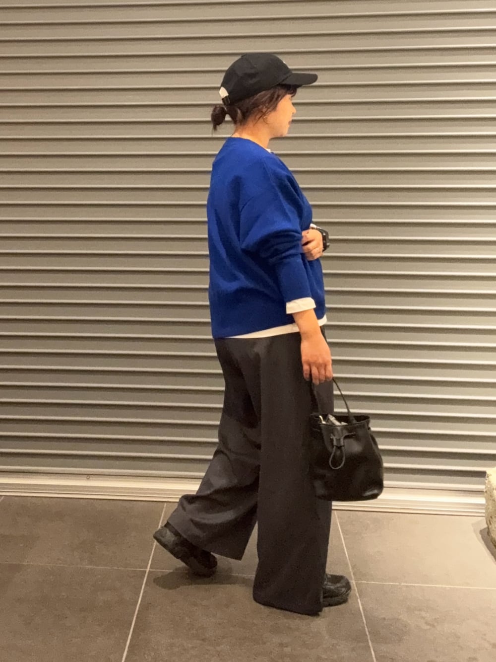キャップに完声パンツで休日ラフコーデにしました。完声パンツはワイドシルエットが可愛いです。9分丈なので、着丈気にせず着れて小柄な方にもおすすめです。秋冬はブーツ合わせも。