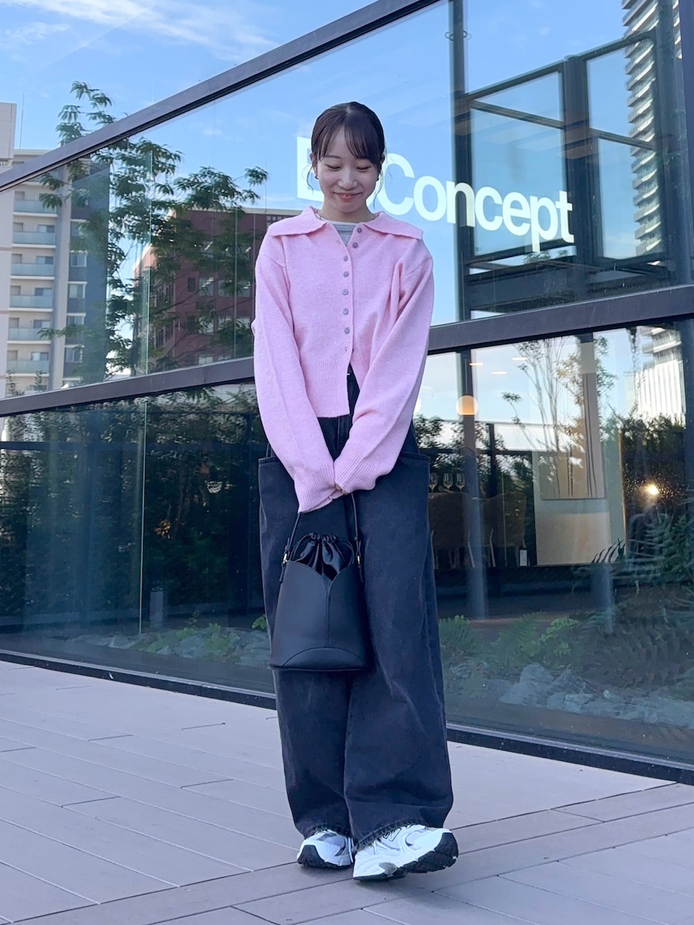 エリツキのカーディガンにレイヤードメローTを着用してカジュアルかつ、ピンクでガーリーっぽさも少しプラスしてみました🙌🏻