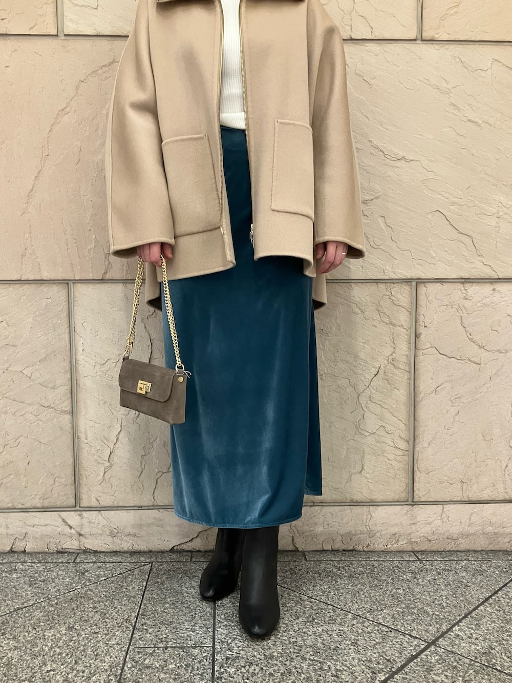 ベロア素材で一気にトレンドを取り入れることができるスカートです。
