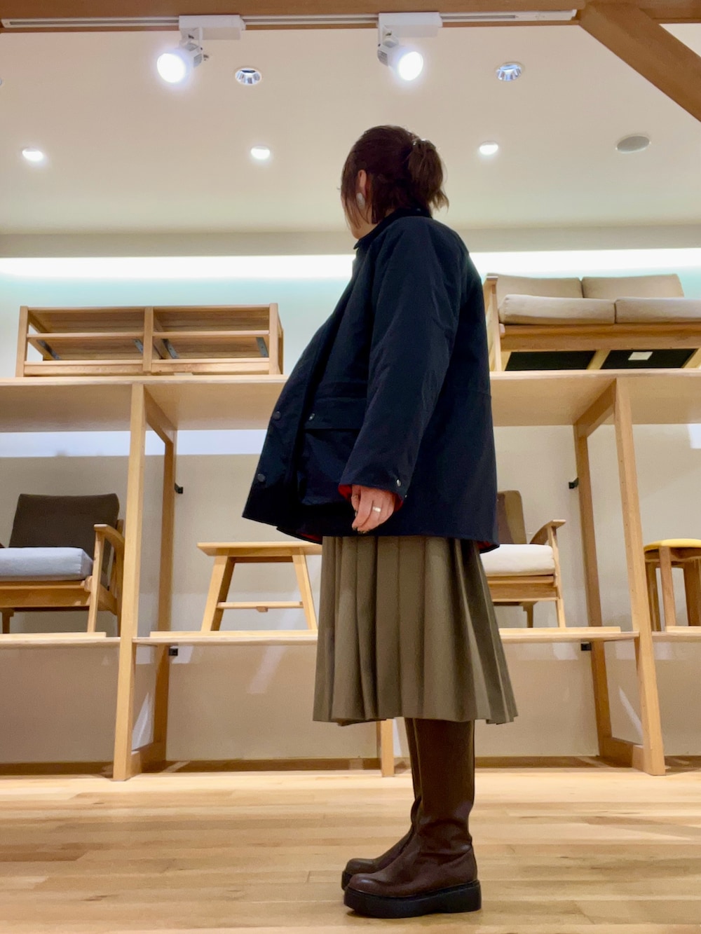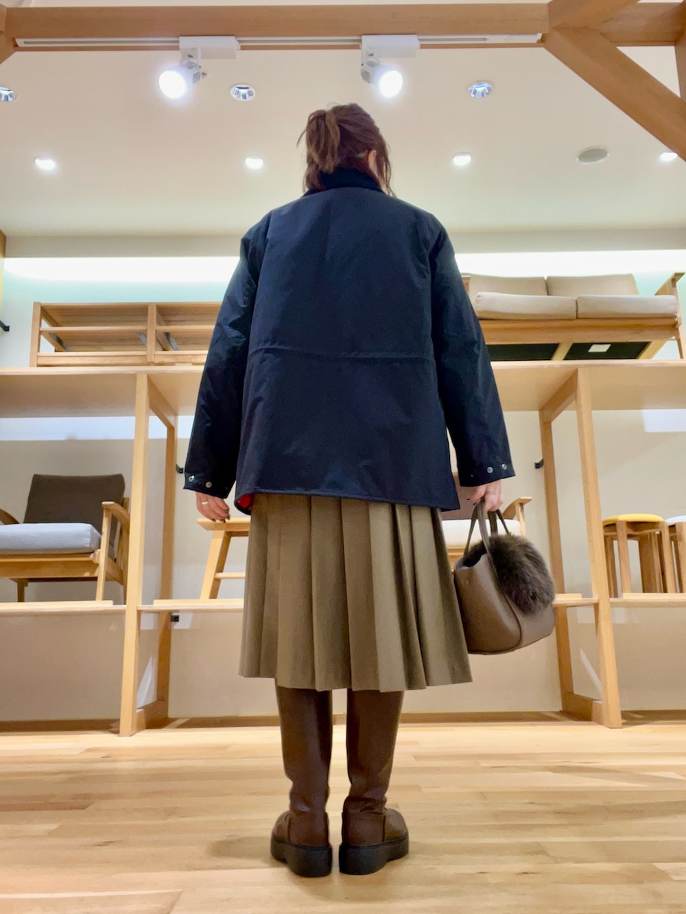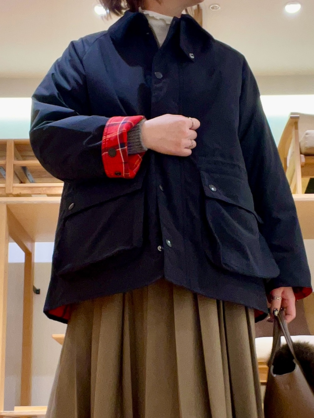 好評なbarbourには、プリーツスカートを合わせレディな装いに‼︎