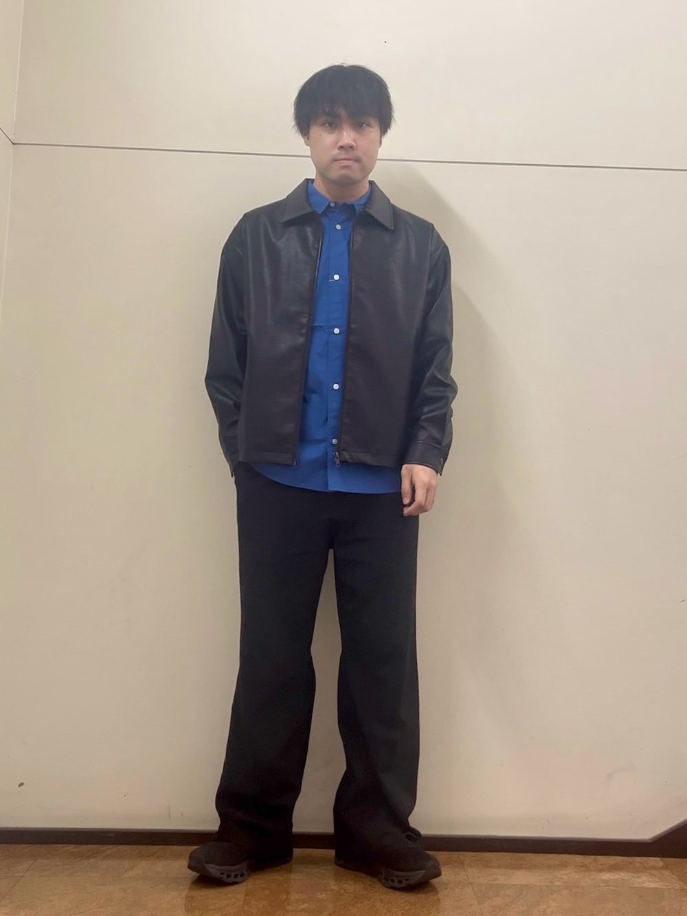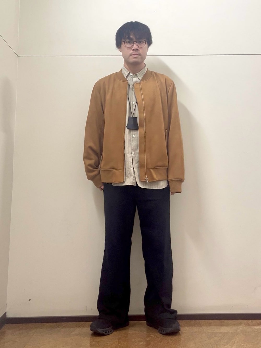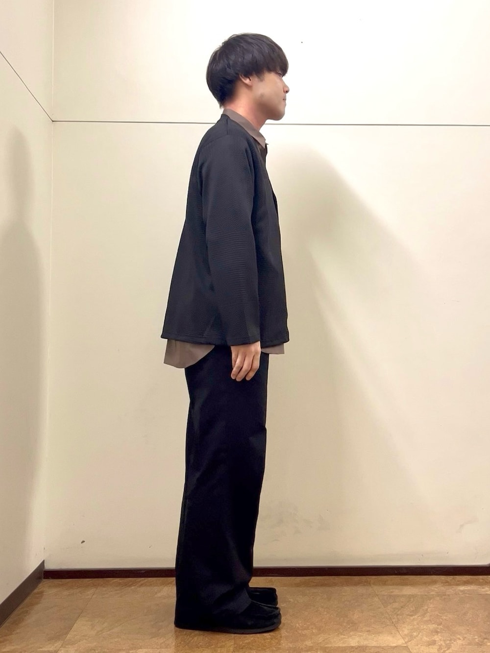 カーディガンの表面には凹凸があって若干カジュアルな印象があるので、シャツなどキレイめなアイテムと組み合わせるといいですよ〜!