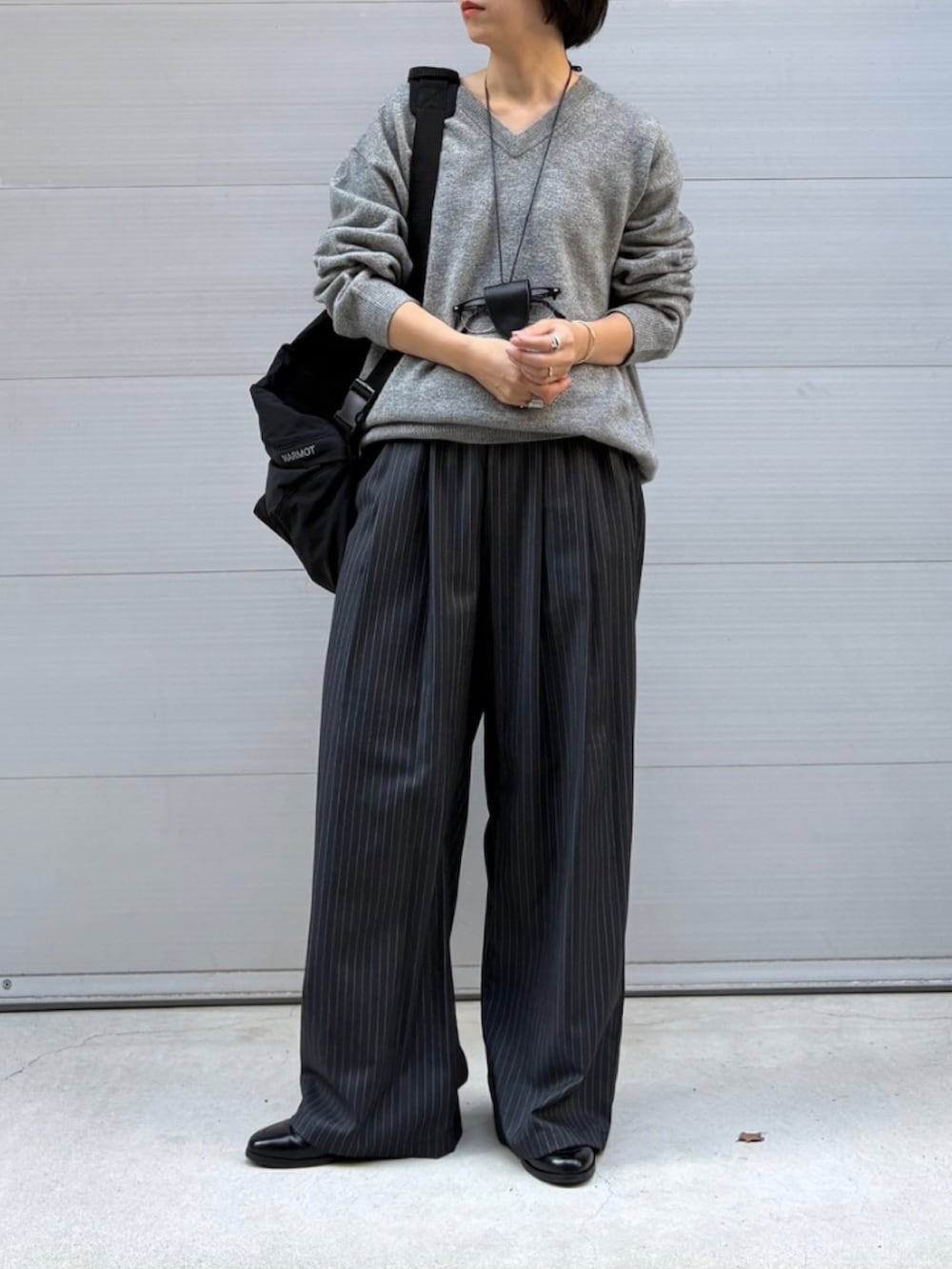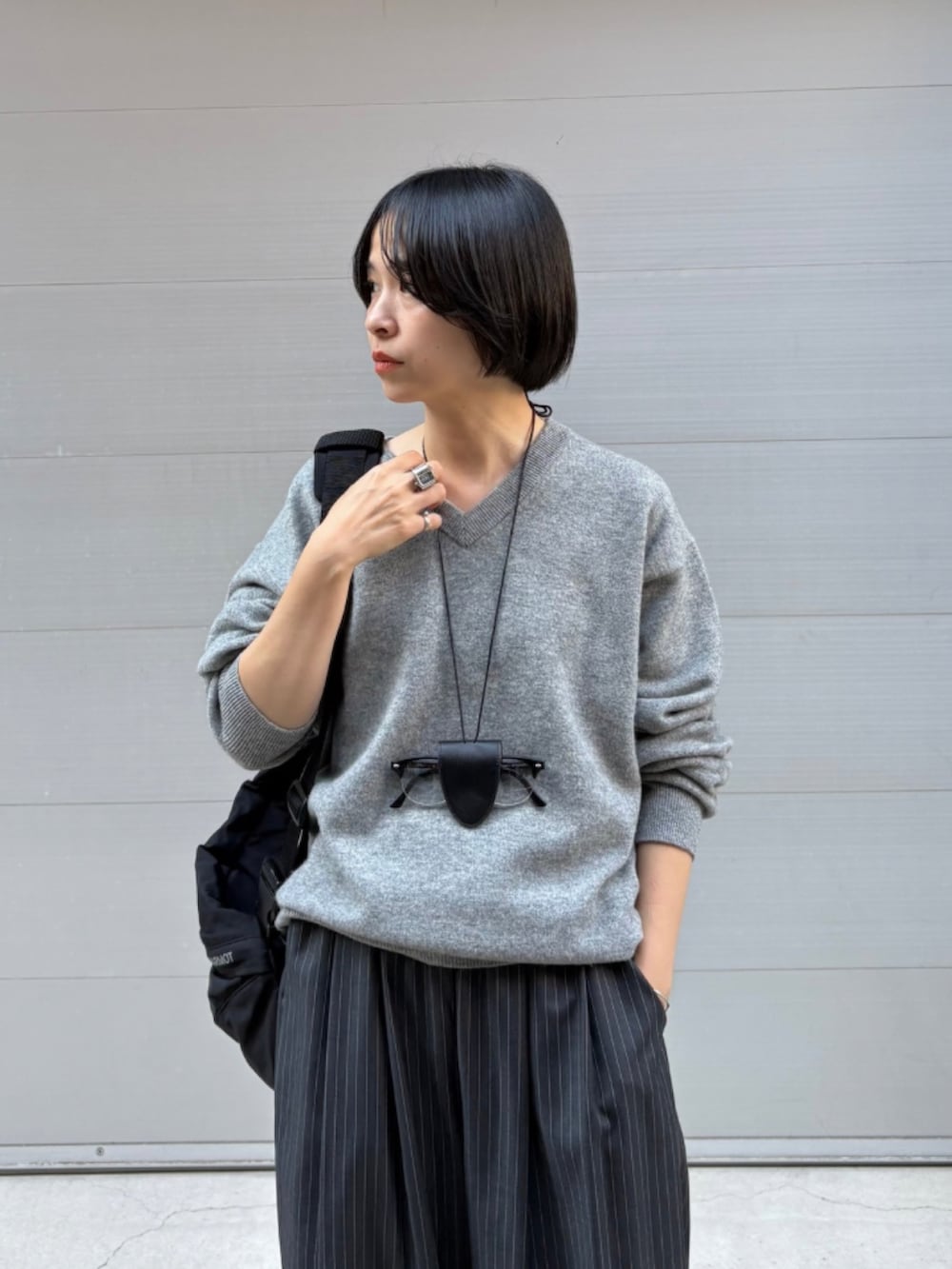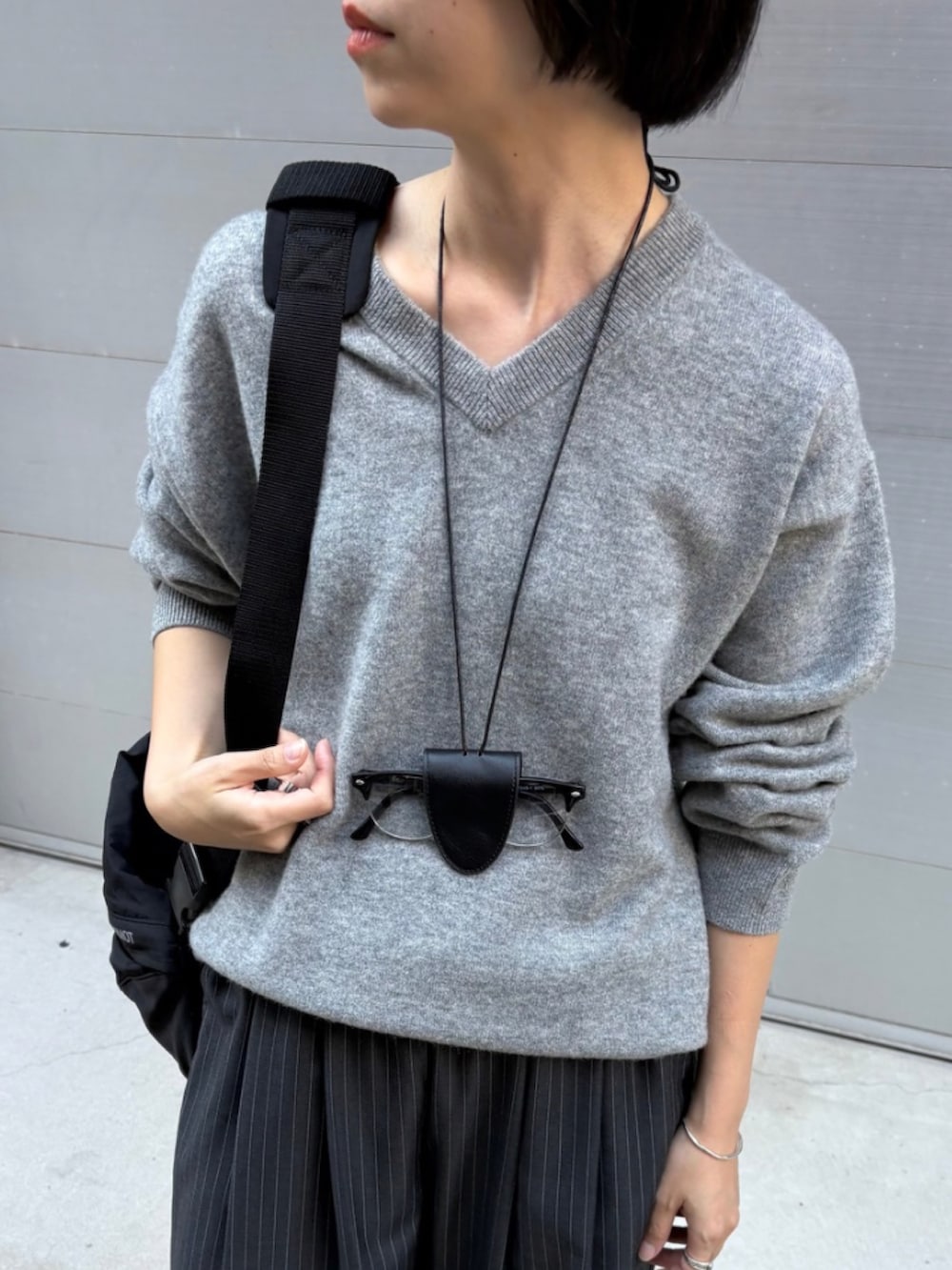 襟元は開きすぎていないので、インナーを気にせず一枚で着られるのが嬉しいポイント。 Vネックが首元をすっきりと見せてくれます。